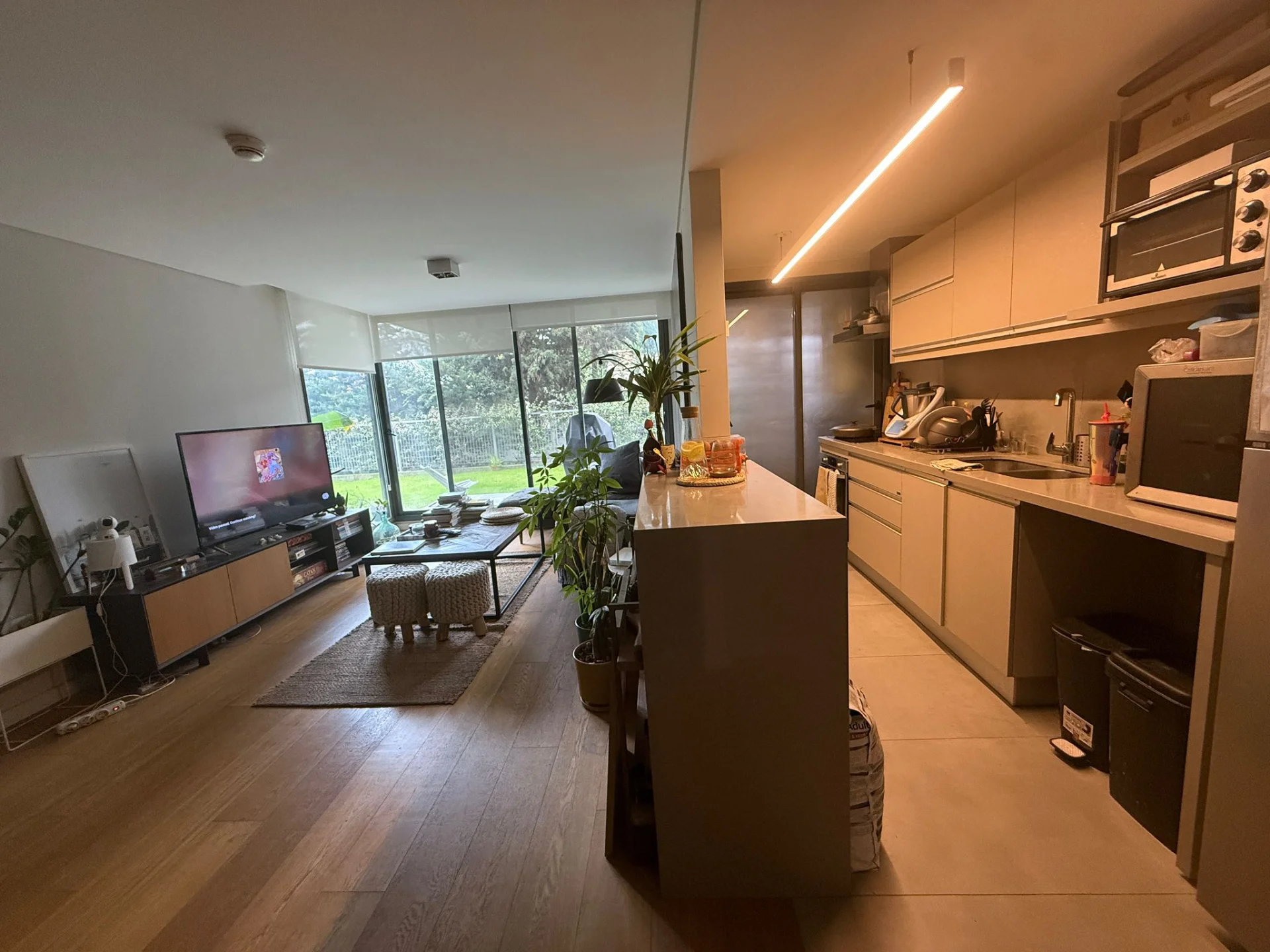 Cuenta con cocina equipada con muebles Johnson y electrodomésticos Samsung.