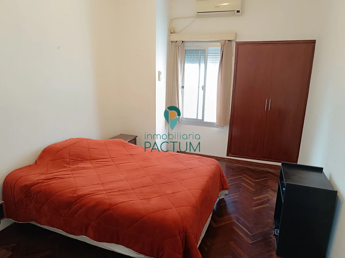Dos dormitorios amplios con placares y aire acondicionado, uno de ellos al frente, con salida al balcón.