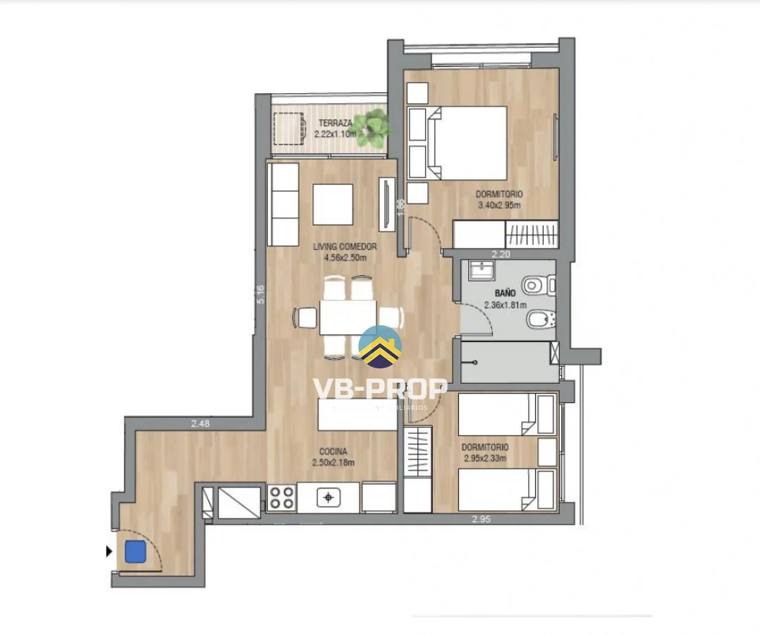 2 dormitorios al frente con placard, principal con aire acondicionado.