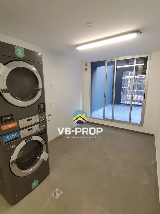 Lavadero con Lavadora y secarropas frontal de uso común con fichas .