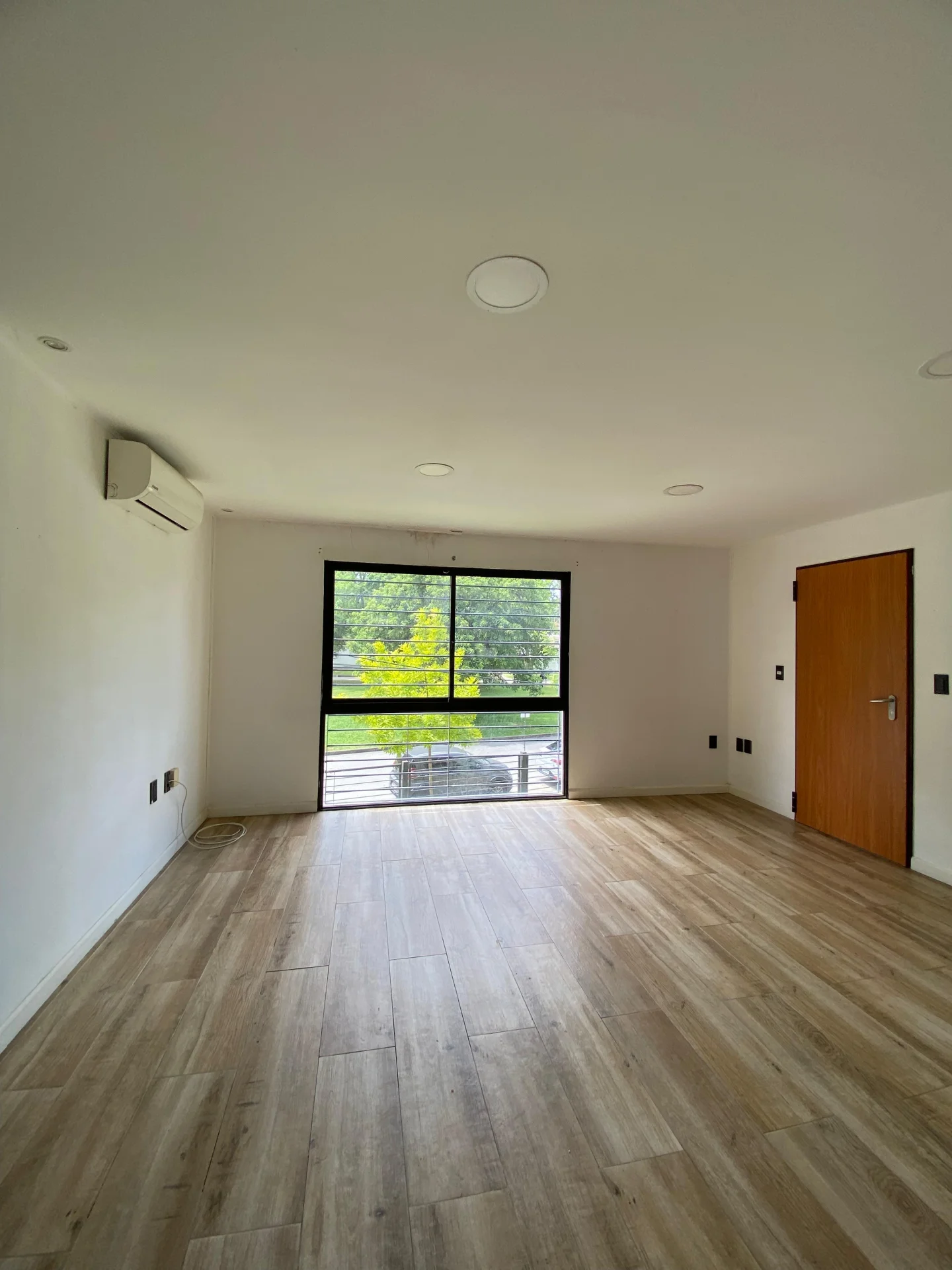 Living comedor amplio, con ventanal al frente y aire acondicionado.