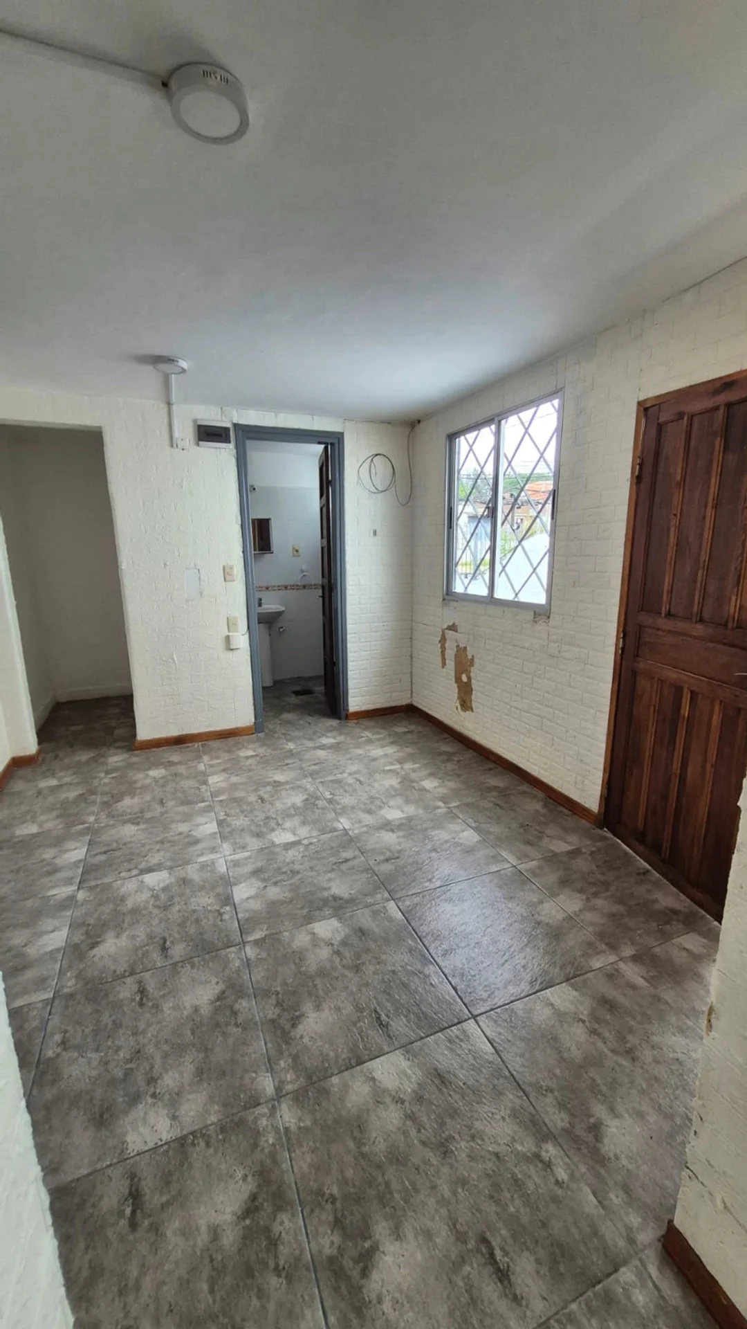 Living comedor con piso de cerámica y ventana al frente