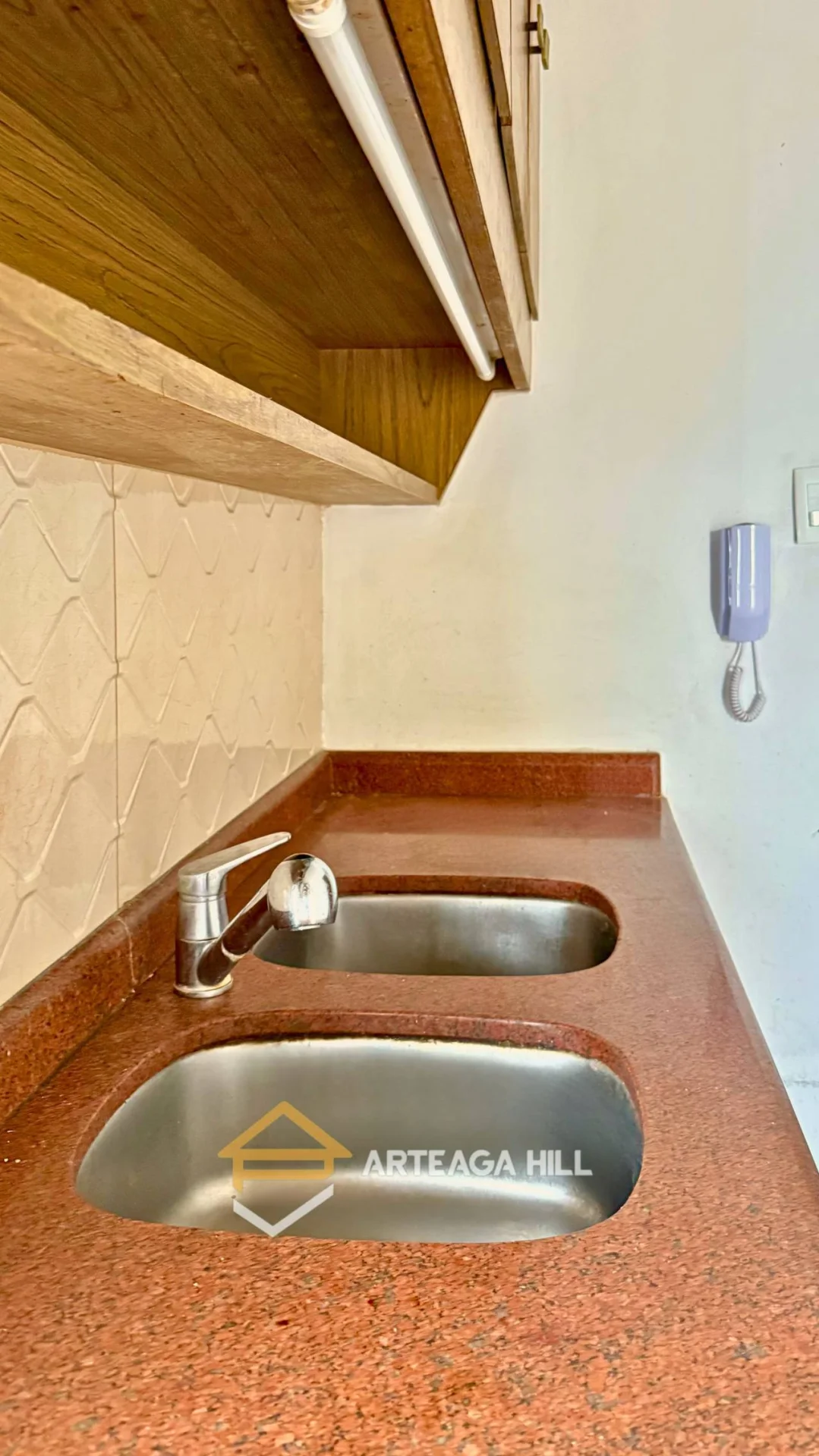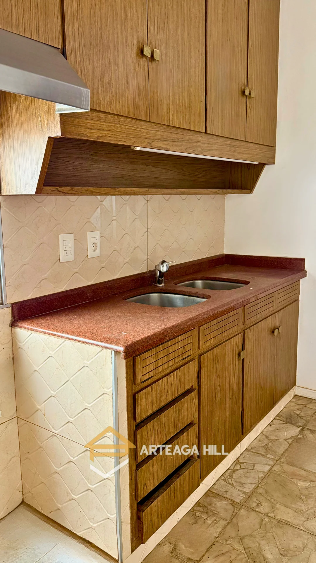 La cocina es definida y de muy buen tamaño, con doble bacha, muebles aéreos y bajo mesada a medida, y espacio para incorporar una mesa tipo desayunador.