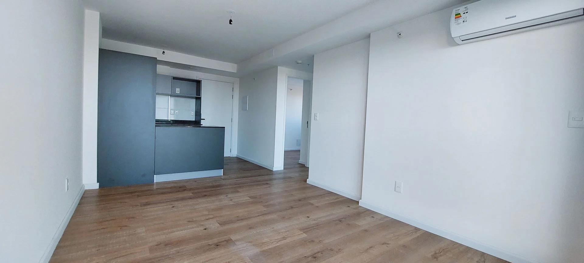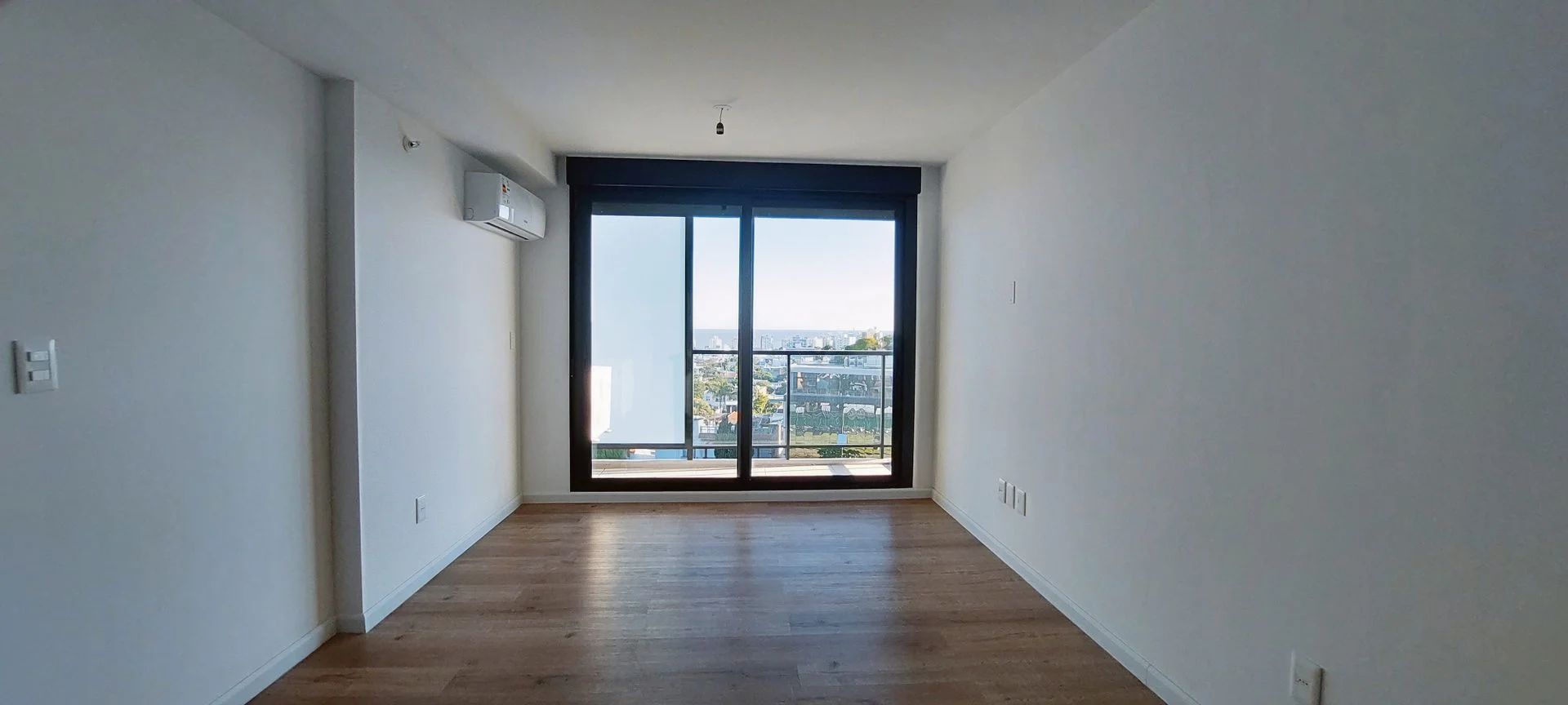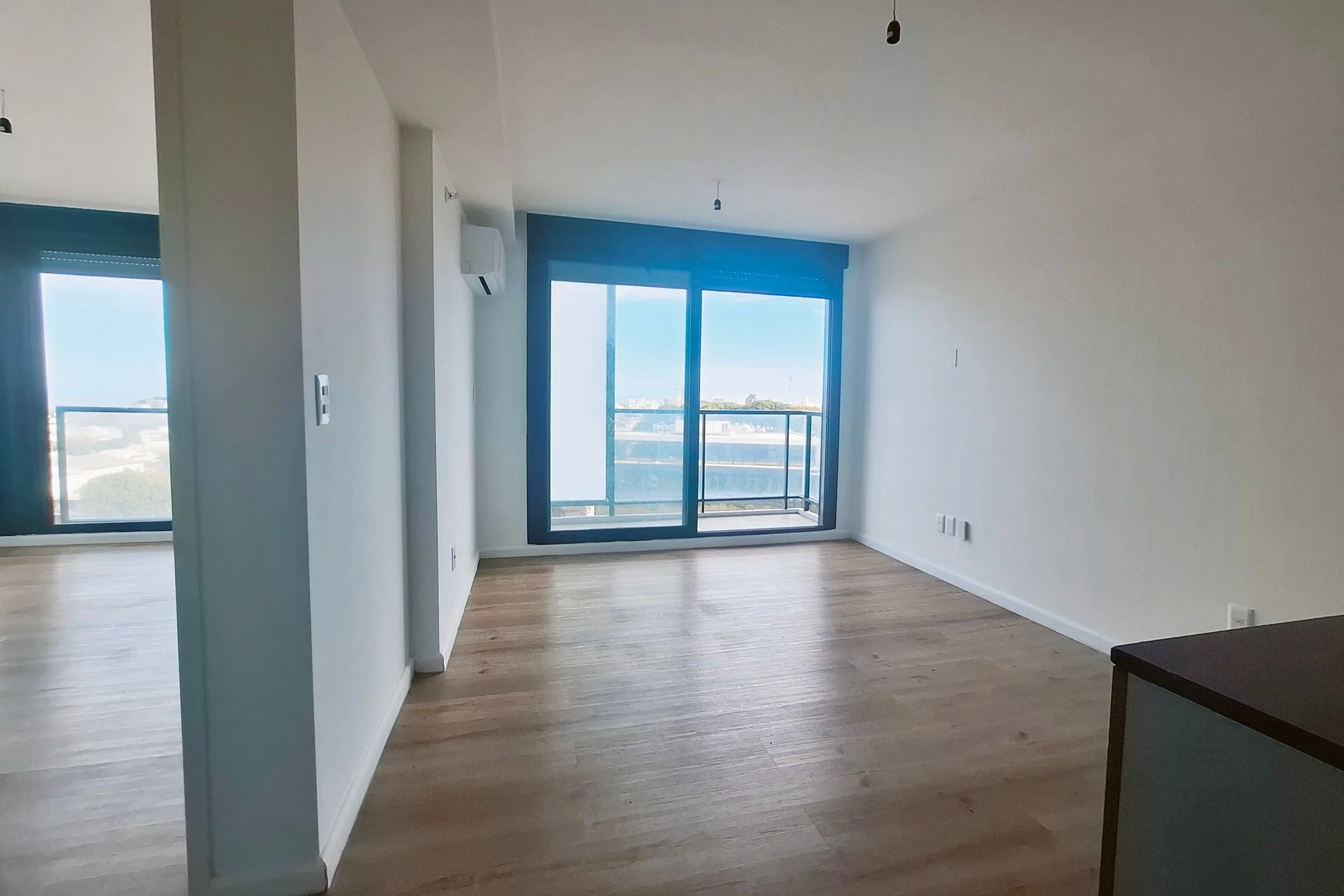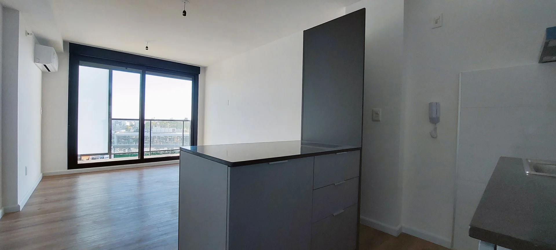 El apartamento cuenta con puerta de acceso con cerradura electrónica. Living comedor con salida a terraza y persiana. Cocina integrada con doble mesada de granito color negro, muebles aéreos y bajo mesada, campana y mueble para heladera. 2 dormitorios ambos con placard y persiana. Baño completo con calefón, mueble y previsión para lavarropas. Aire acondicionado en living y dormitorio principal. Garage.