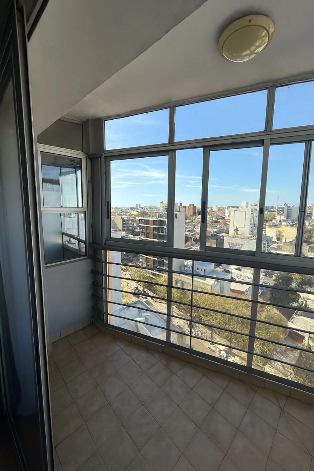 La distribución es funcional: al ingreso se encuentra el living‑comedor, con acceso a balcón y aire acondicionado. La cocina definida está equipada con muebles aéreos y bajo mesada y tiene salida a una terraza lavadero.