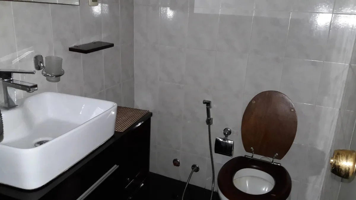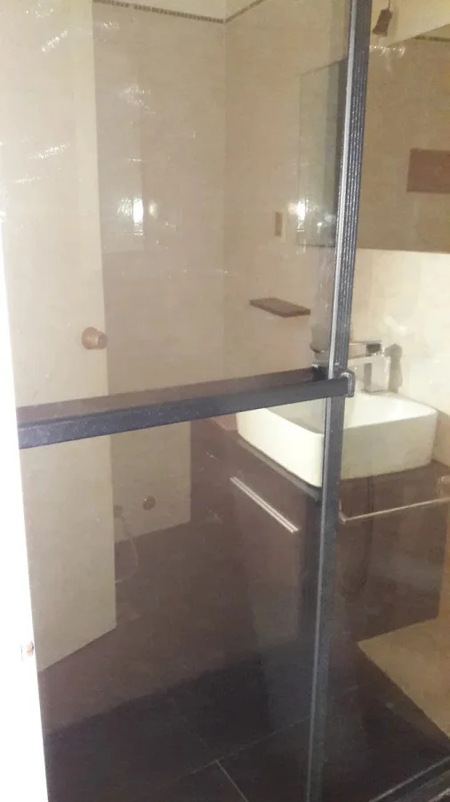 . Baño reciclado con ducha higiénica, mampara en ducha y extractor