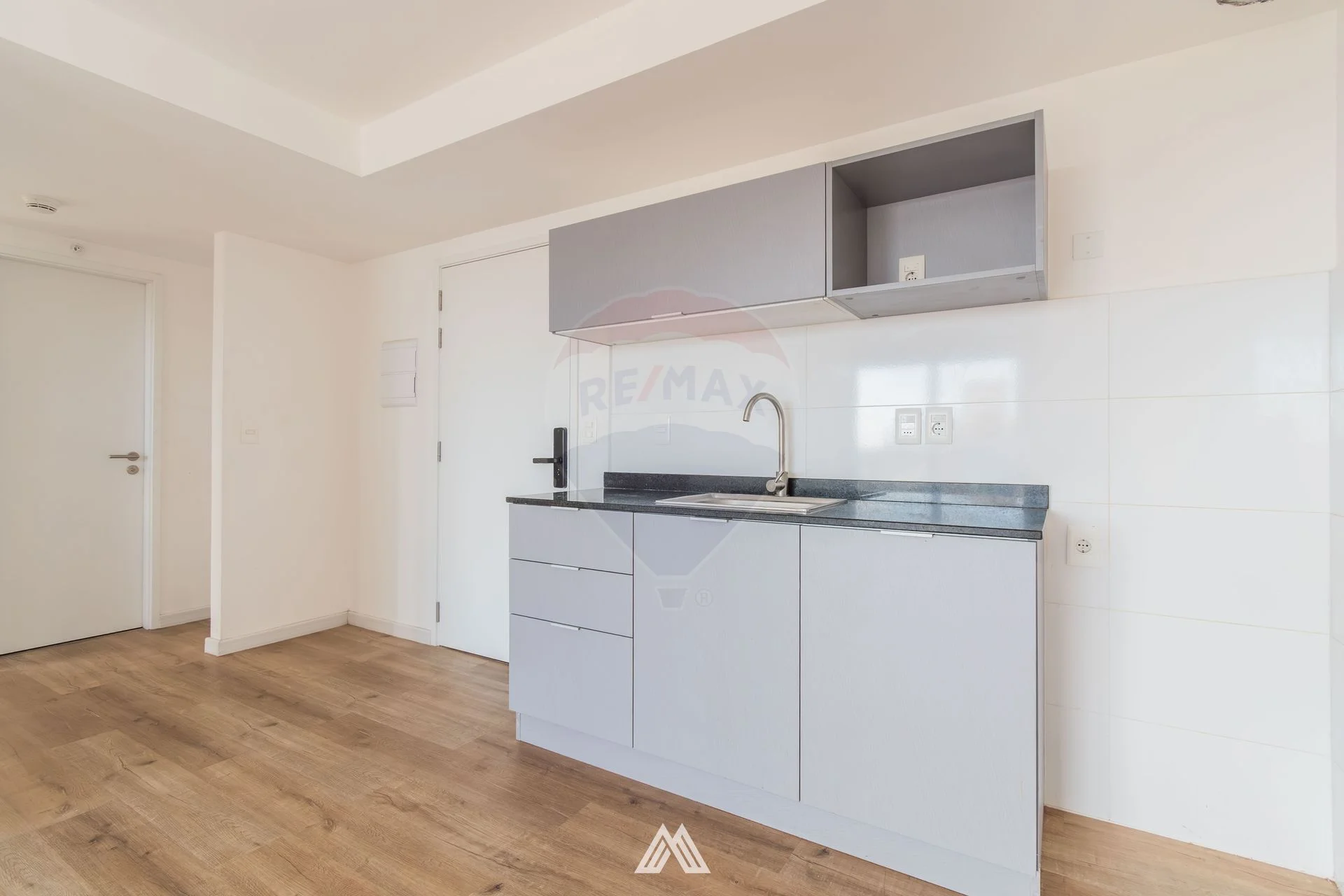 La cocina se encuentra integrada con el living comedor y cuenta con muebles bajo y sobre mesada.