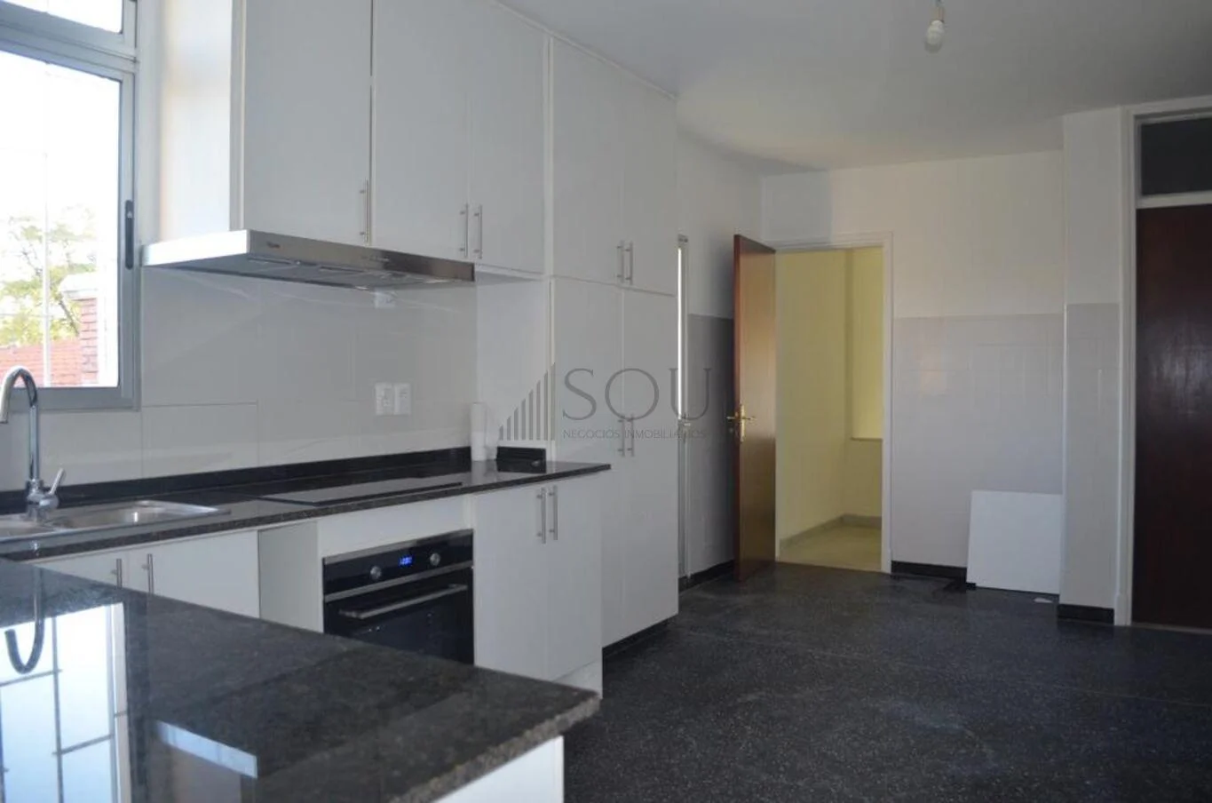 - Cocina definida con muebles aéreos y bajo mesada, anafe, horno empotrado y campana extractora, y salida a amplia terraza