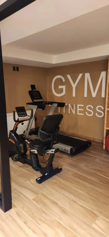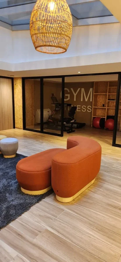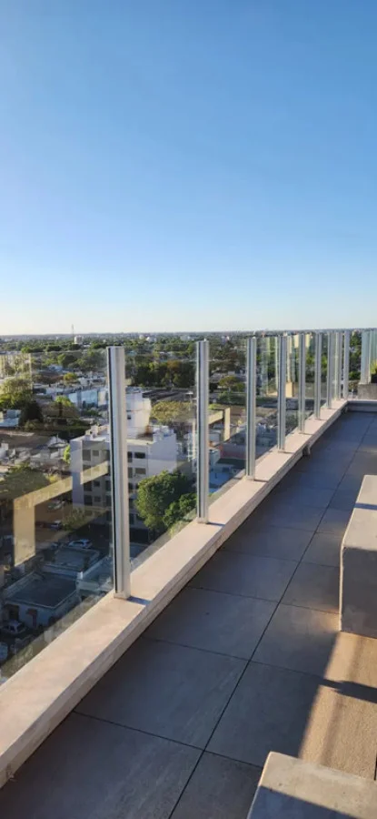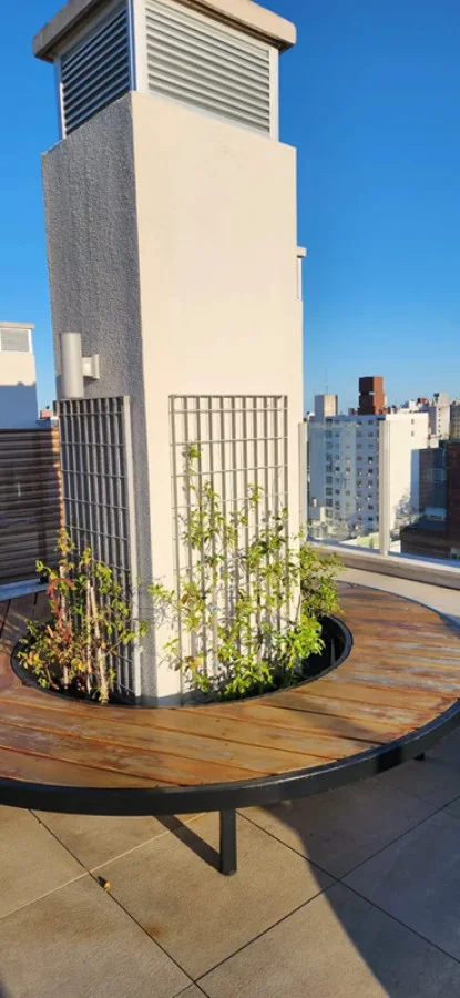 . Azotea con vistas panorámicas, maquinas de ejercicio y áreas de descanso