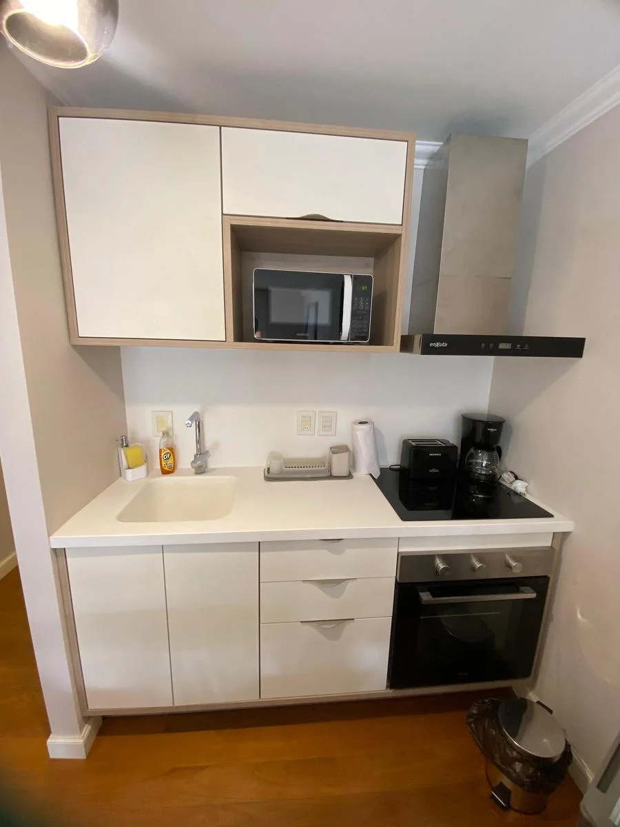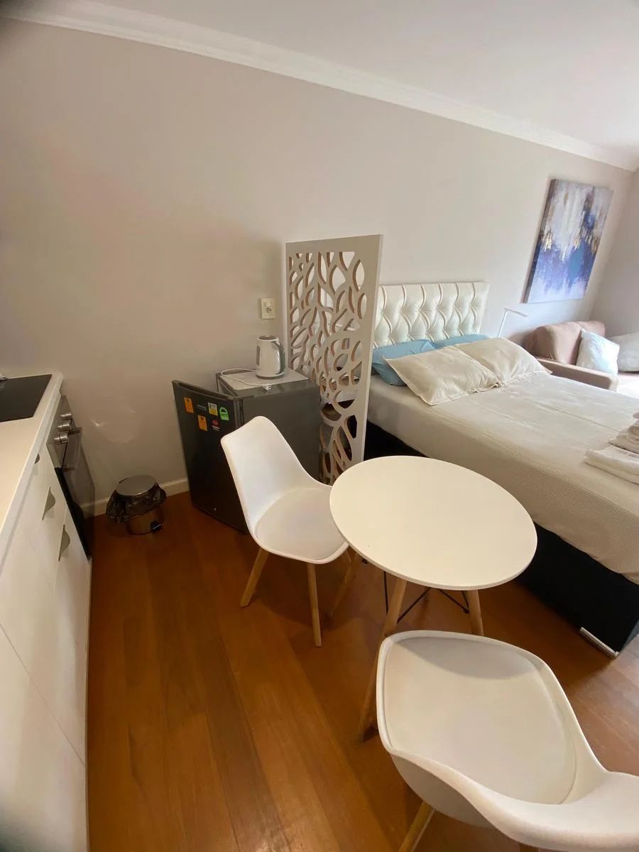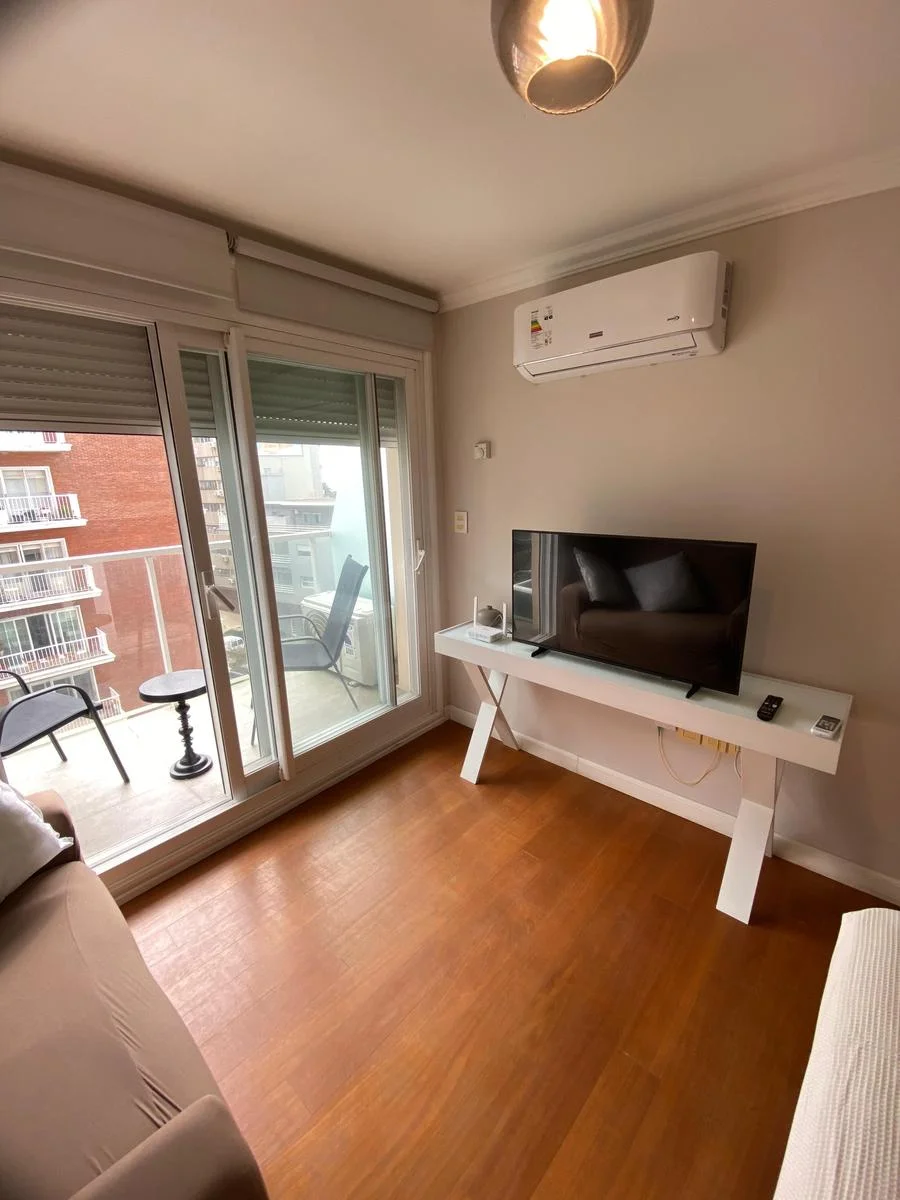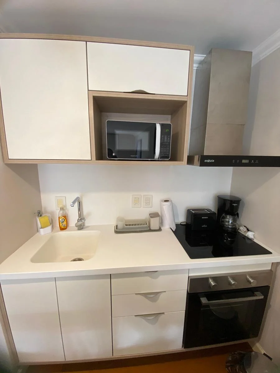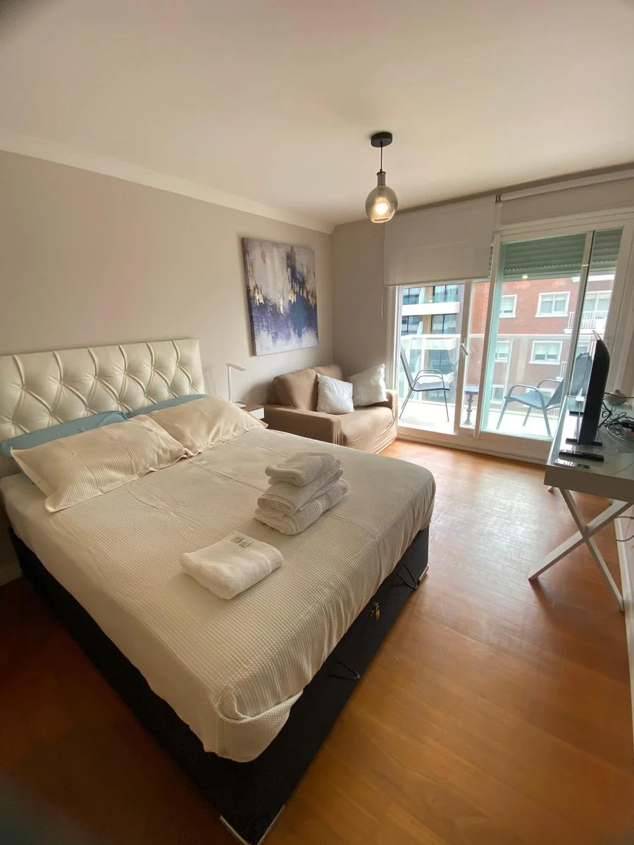 La unidad se encuentra completamente equipada y lista para ingresar, ofreciendo un espacio moderno, cómodo y funcional. Cuenta con cocina completa con campana extractora, microondas, cafetera y tostadora, además de un baño completo con calefón. El ambiente principal está bien definido, con sector de dormitorio que incluye cama, TV, aire acondicionado y sillón, generando un espacio confortable tanto para descanso como para el día a día.
