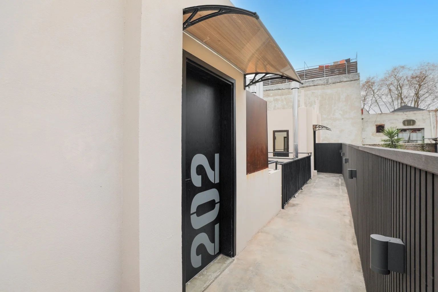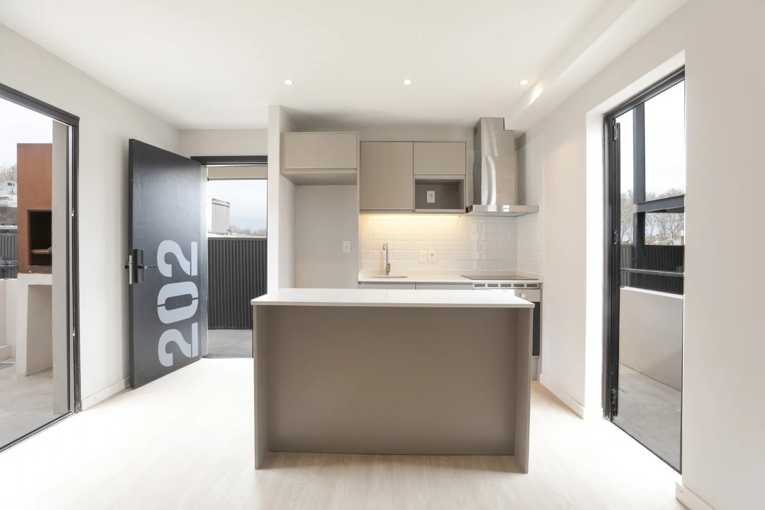 El departamento se encuentra en el segundo piso del desarrollo Palermo Design, tiene patio de uso privado con parrillero completo individual.