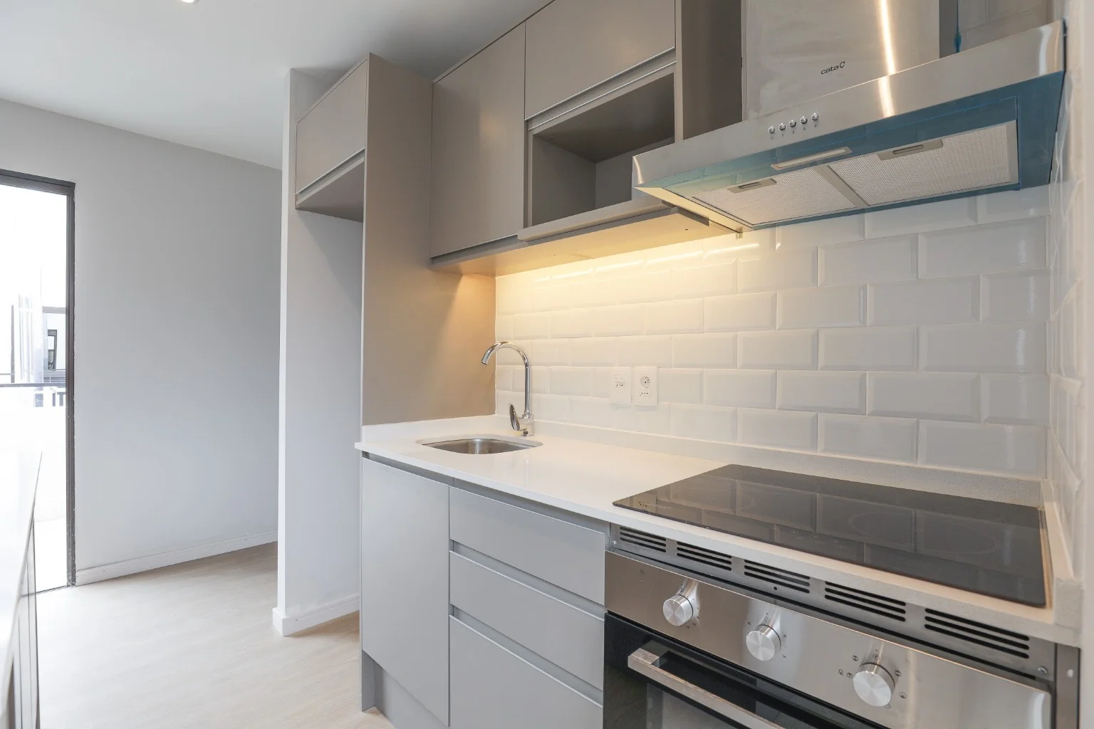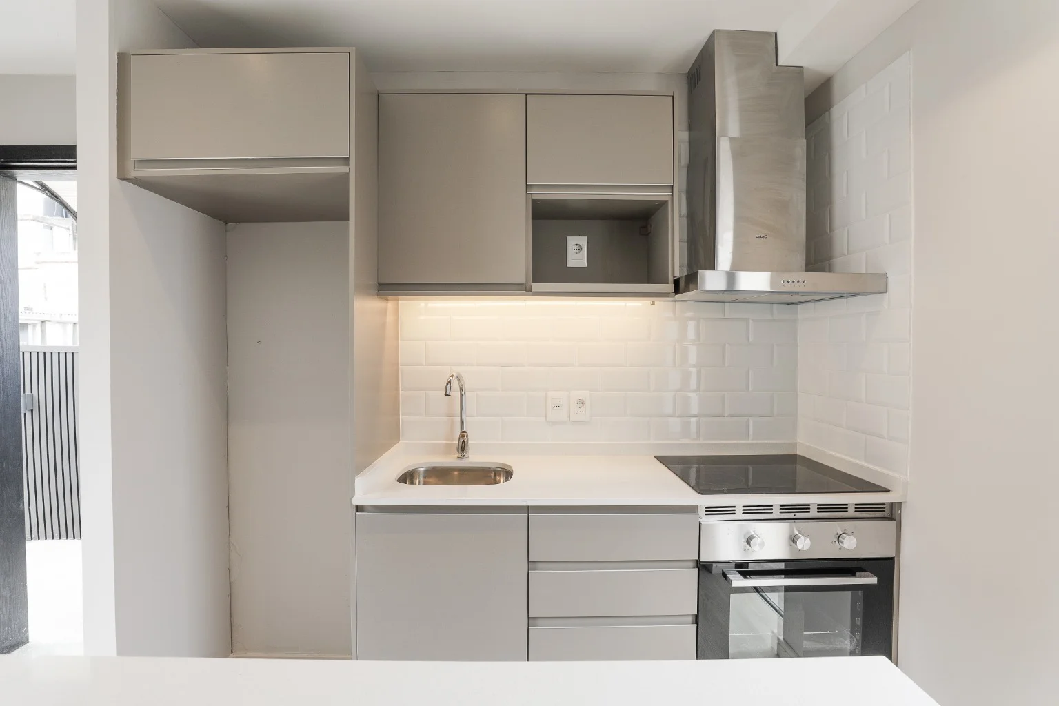 La cocina tiene anafe, horno empotrado y campana de extracción de humo y olores.