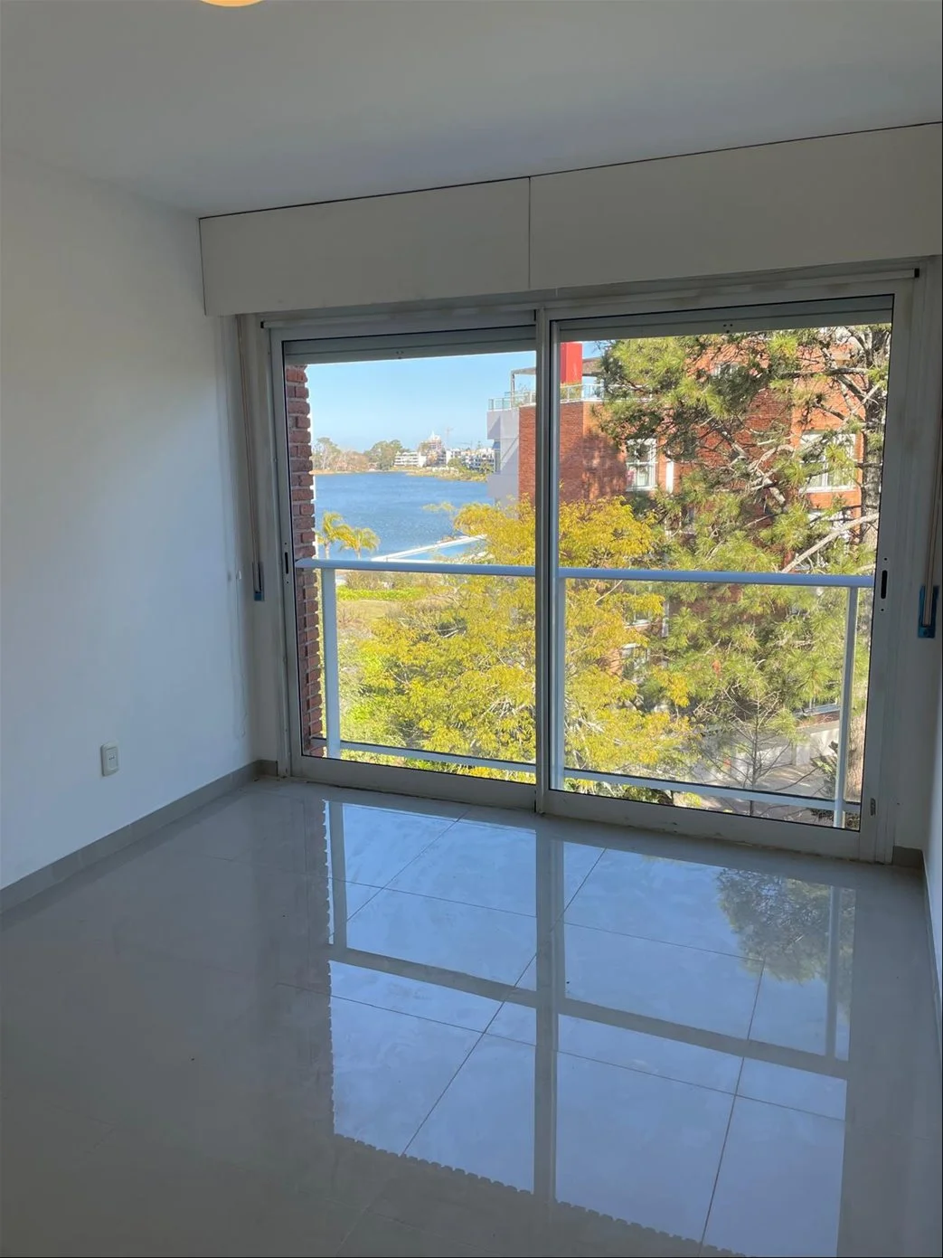 Terraza con parrillero y puerta de salida directa al ascensor con divina vista al lago y a la piscina.