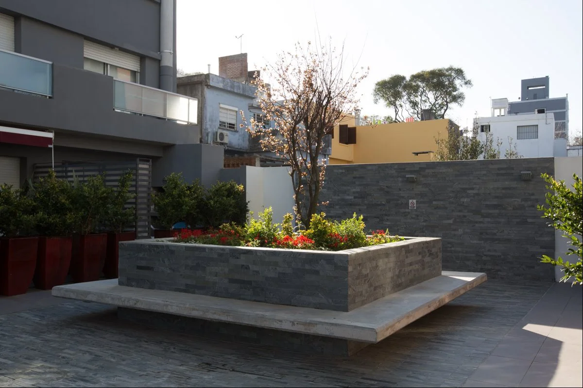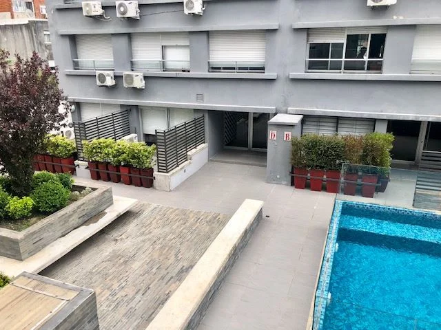 El edificio tiene piscina, lindo patio español y barbacoas abiertas con parrilleros.