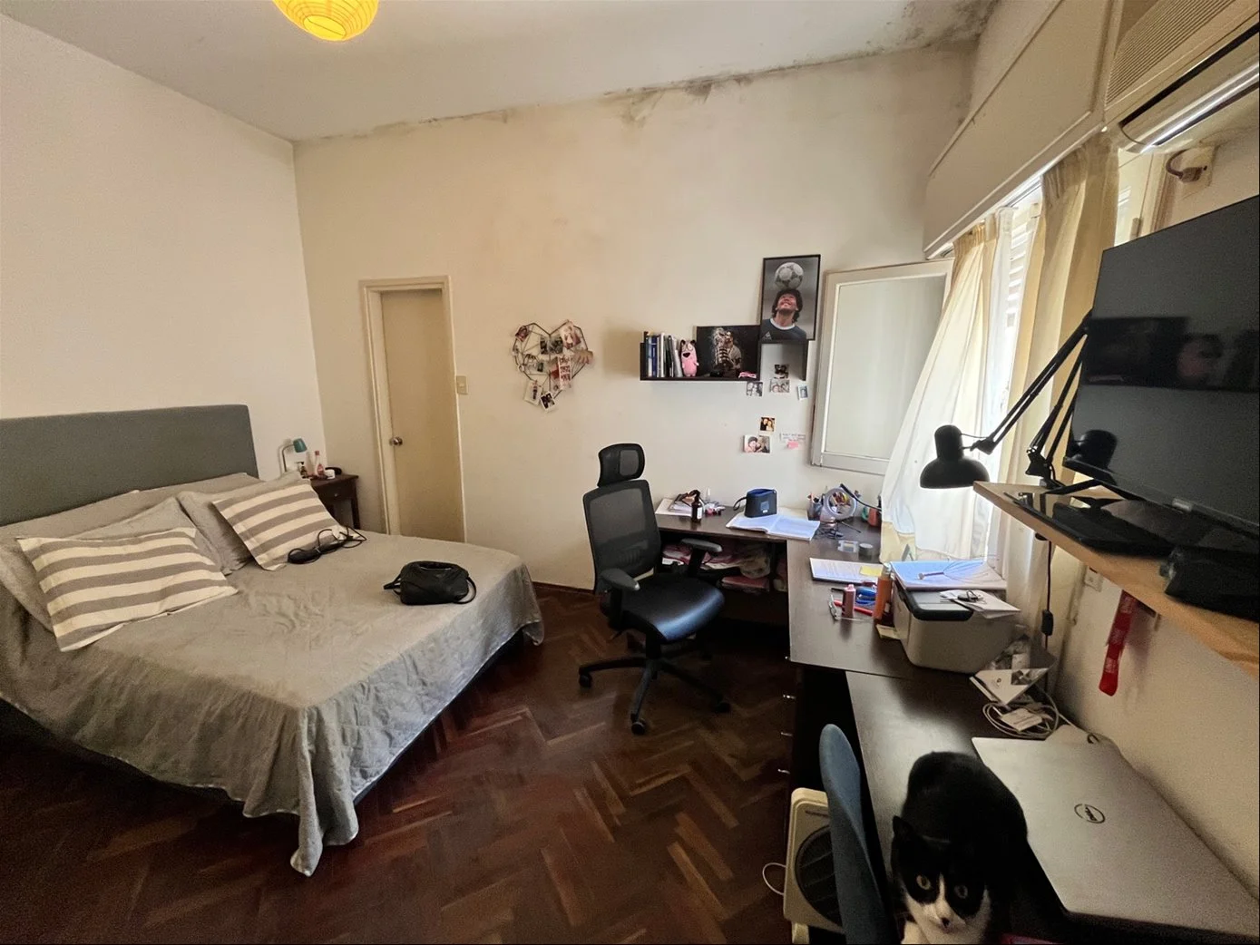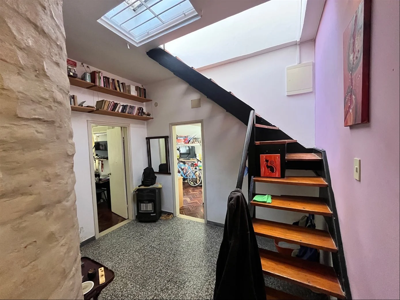 Desde el palier de acceso accedemos a un segundo hall intimo, dos dormitorios con placares, uno de ellos con un ambiente extra (posible vestidor o escritorio) con salida a balcón de servicio, un baño completo y se encuentra aquí la escalera a la segunda planta.