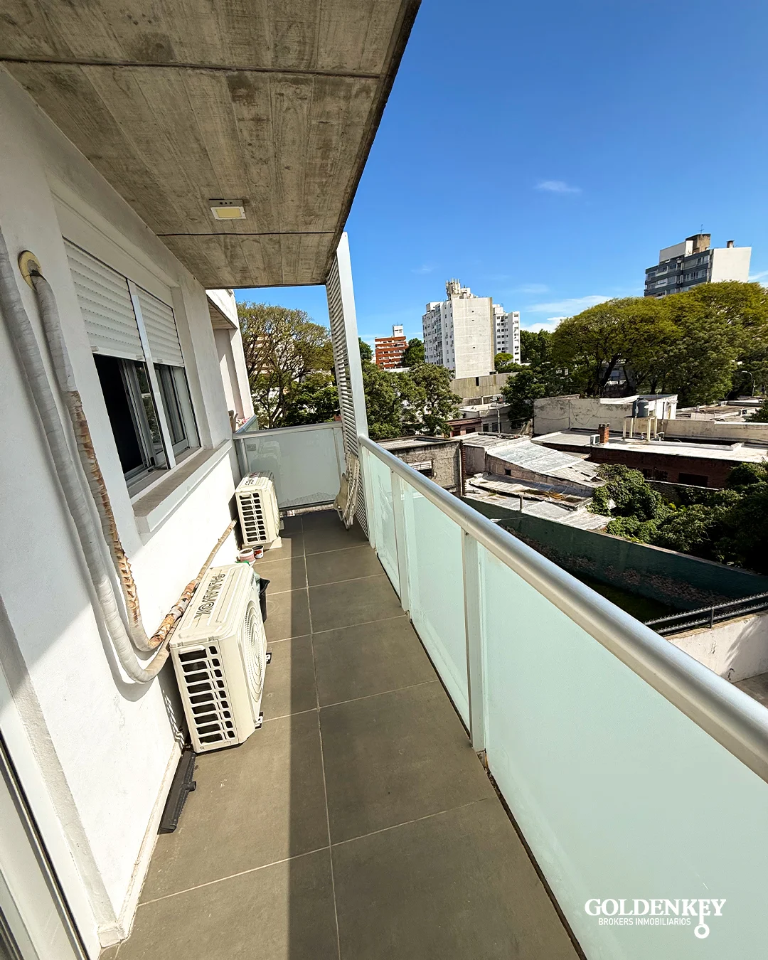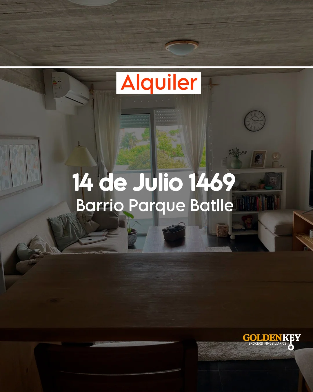 Alquiler: $29.000 / GC: $3.000.GARANTÍAS: ASEGURADORASAlquiler Apartamento en piso 2 por escalera en barrio Parque Batlle. Apartamento al contra frente sobre calle 14 de Julio entre Capitán Videla y José Luis Bado. A 2 cuadras de Avenida Rivera y 2 cuadras del Parque Villa Dolores (ex zoológico). Living comedor muy luminoso con piso porcelanato negro, con amplia puerta ventana en aluminio con salida a terraza con parrillero. Cocina integrada con barra desayunadora. Muebles aéreos y bajo mesada en MDF, con mesada en granito. Cuenta con extractor, cocina, lava vajilla, calefón y 2 aires acondicionados (uno en Living y otro en Dormitorio).Baño completo.Dormitorio amplio y luminoso de 10 m2.