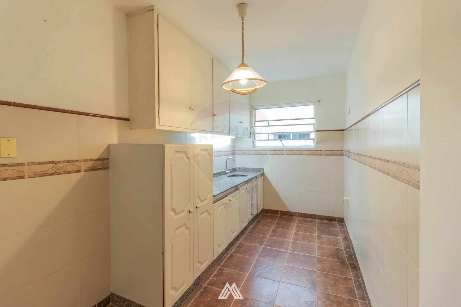 La cocina, espaciosa y funcional, permite la colocación de un desayunador y cuenta con generosos espacios de guardado. El baño completo incluye mampara, artefactos de losa blanca, ducha higiénica y preinstalaciones para lavarropas y calefón.
