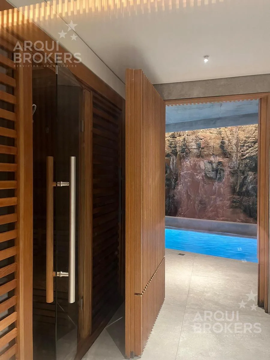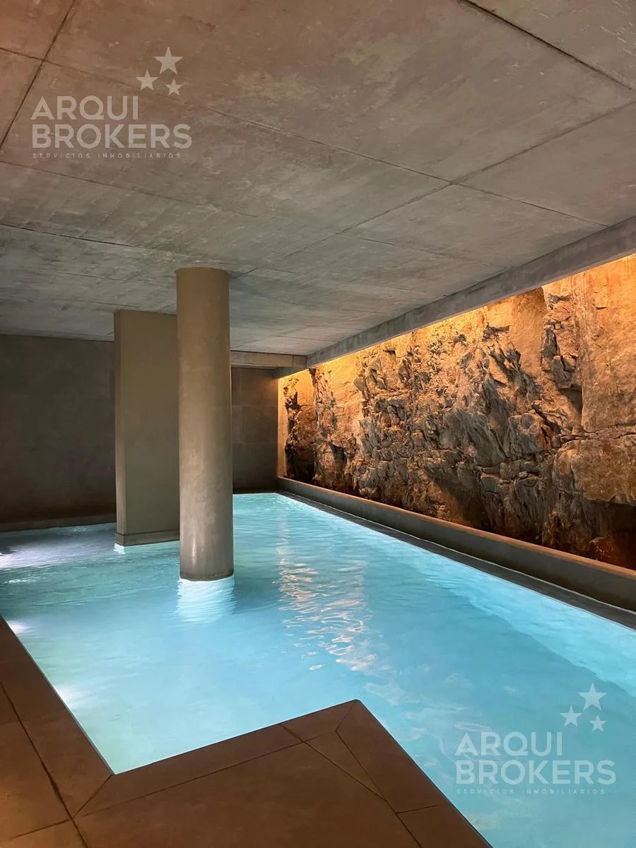 Amenities: Sky bar, solárium, canal de nado climatizado, biblioteca, gimnasio, bicicletas, piscina descubierta, jacuzzi, parrillero, sauna y seguridad.