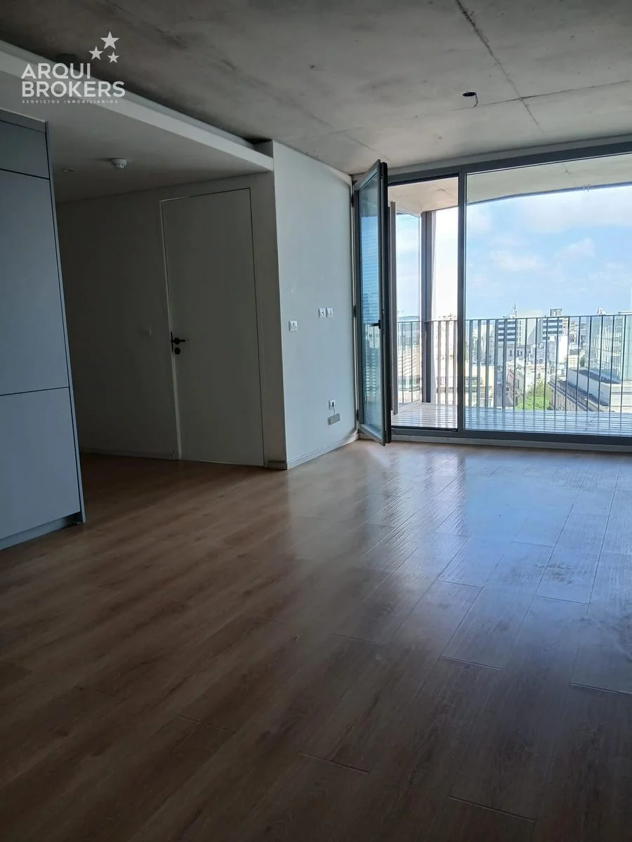 Living comedor con terraza y cocina integrada, 1 dormitorio y 1 baño.