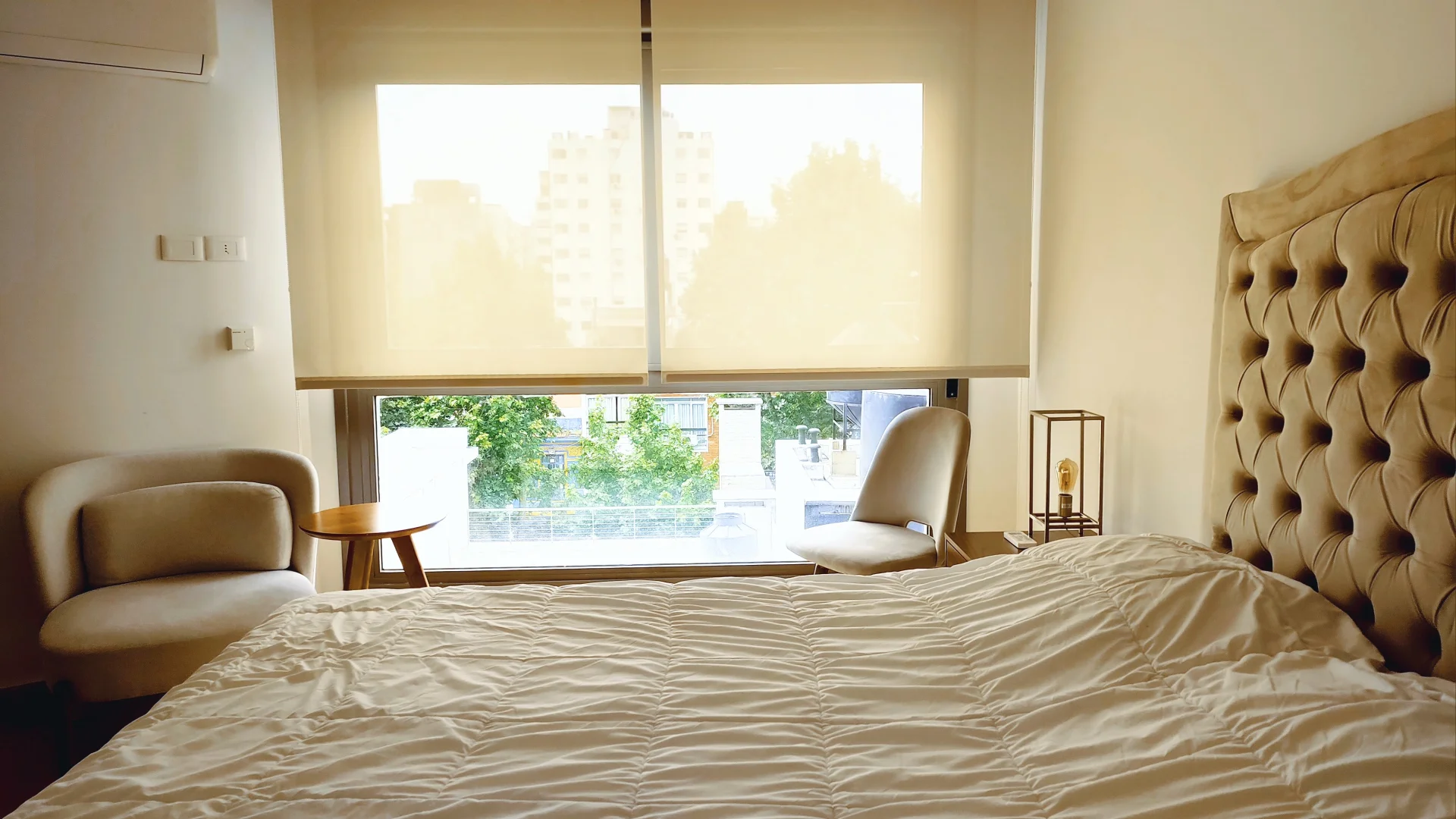 El dormitorio dispone de placard, además de aire acondicionado para mayor comodidad. El baño presenta terminaciones modernas y funcionales.