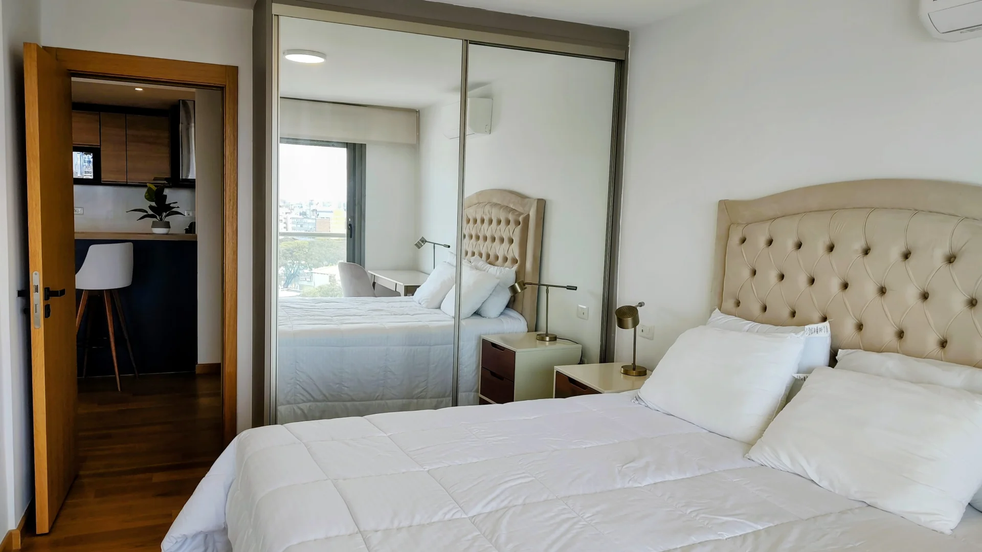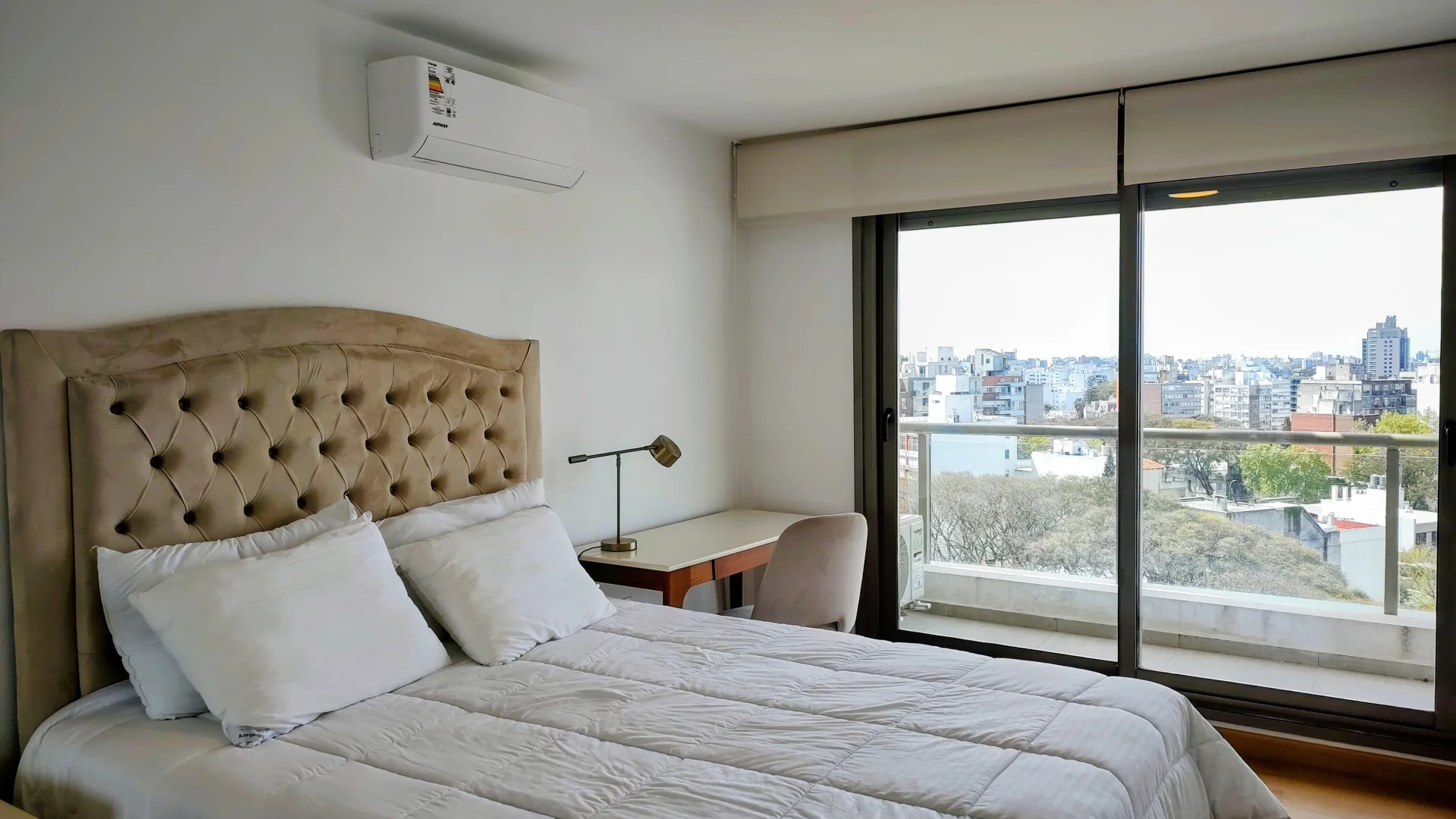 El apartamento dispone de un amplio dormitorio con placard y escritorio. Aire Acondicionado.