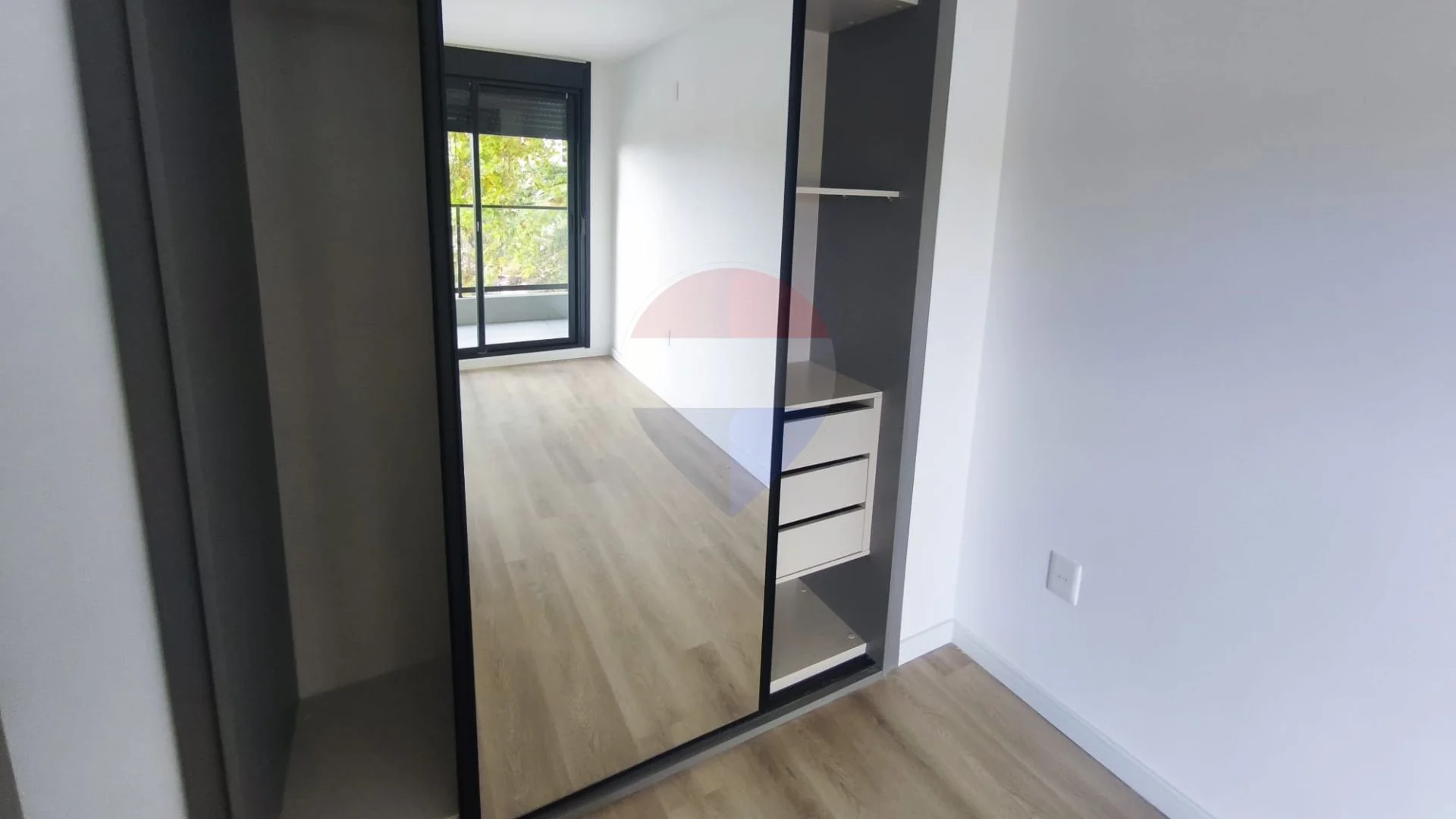 Dormitorio con placard con puertas espejadas, y ventanal con salida al balcón