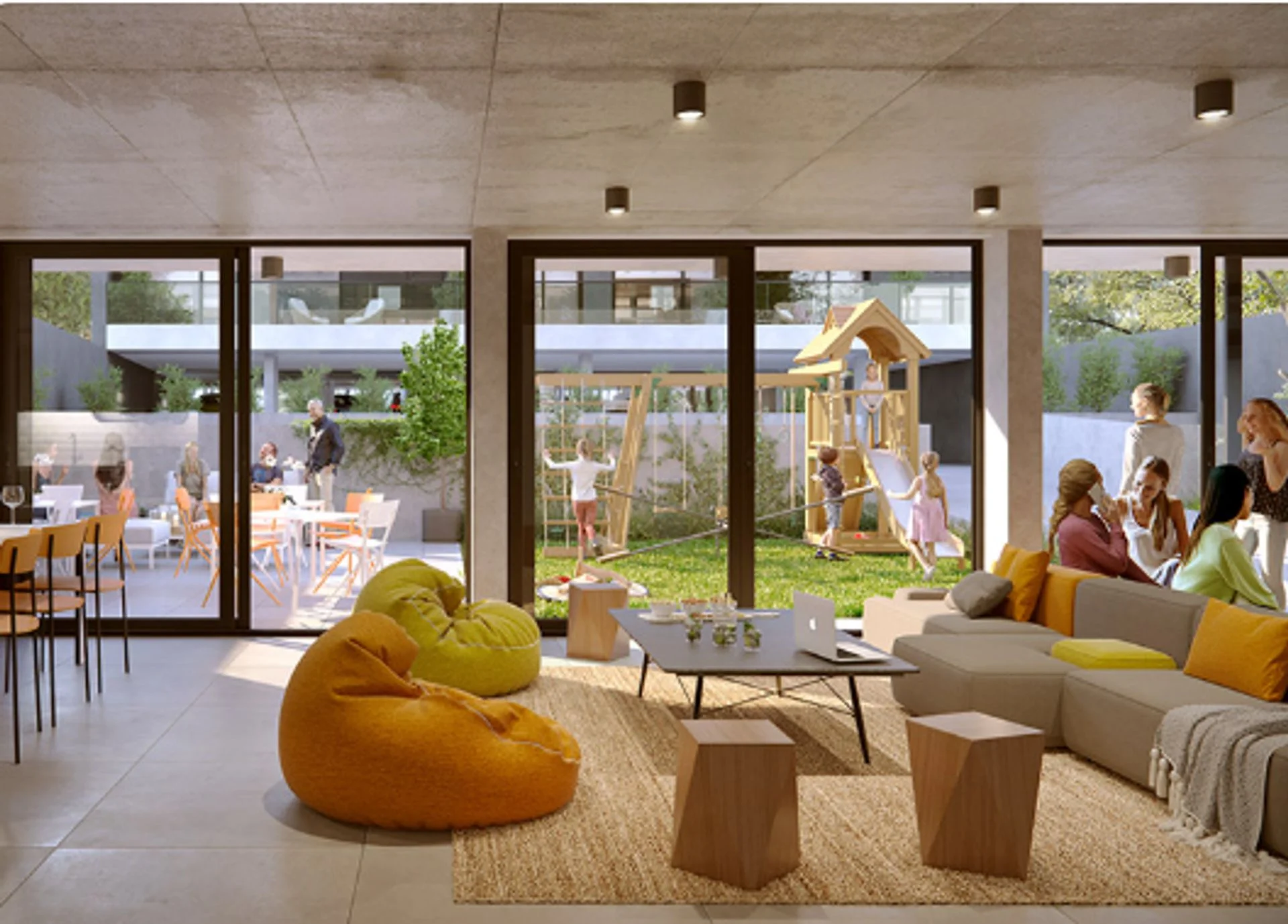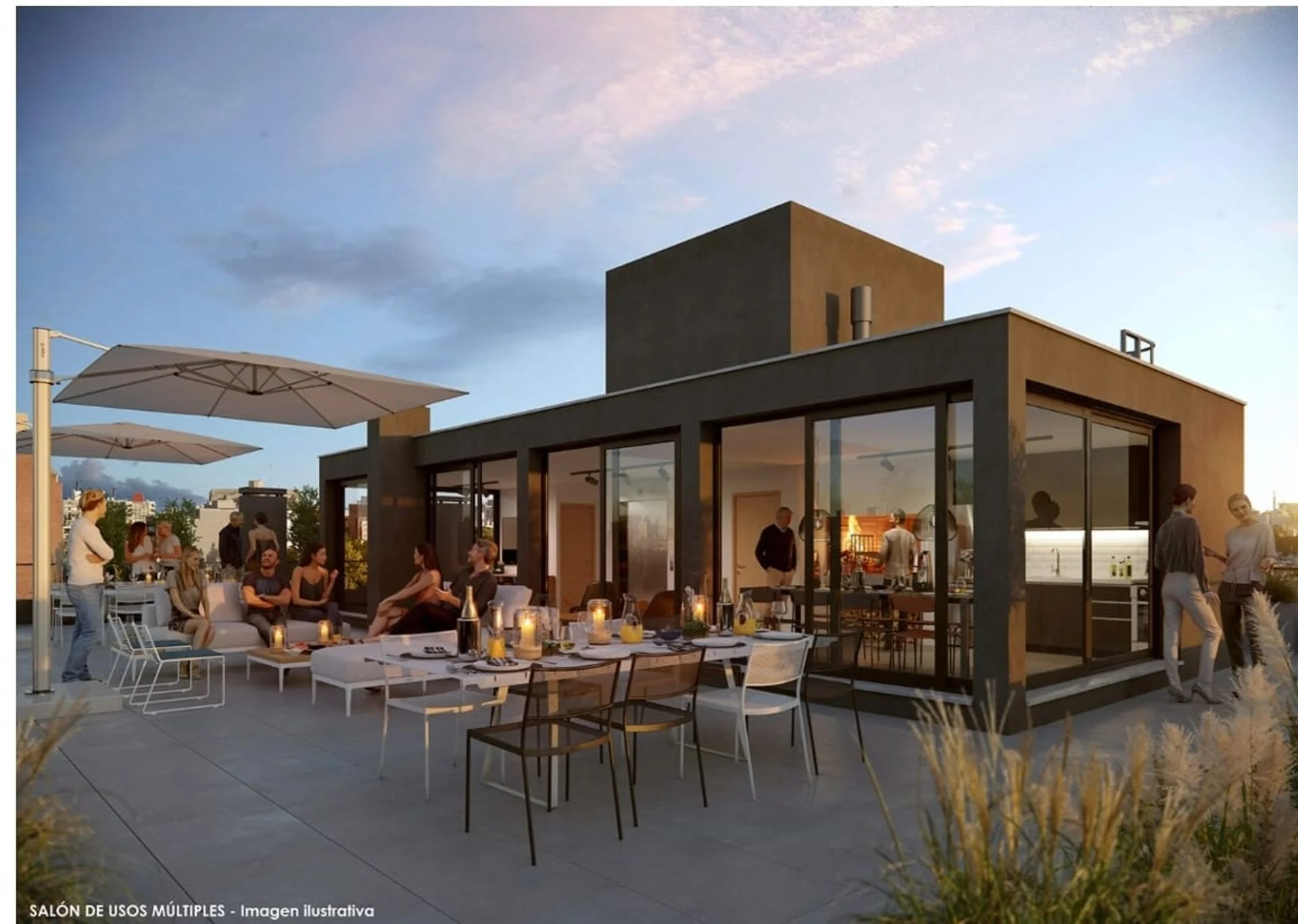 Se desarrolla en un 3er piso al frente, con orientación oeste lo que lo hace muy cálido y luminoso.