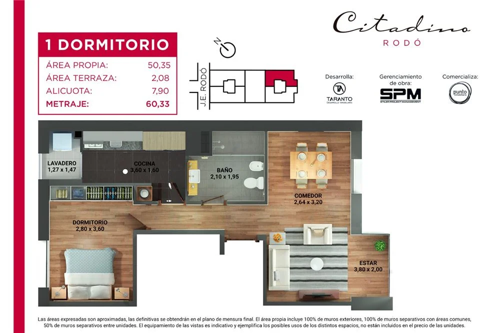 La presente publicación describe las características esenciales del inmueble, debiéndose consultar al responsable de la operación por la eventual actualización de las medidas, descripciones arquitectónicas y funcionales, servicios, impuestos, precios y demás información, cuyos valores son aproximados.