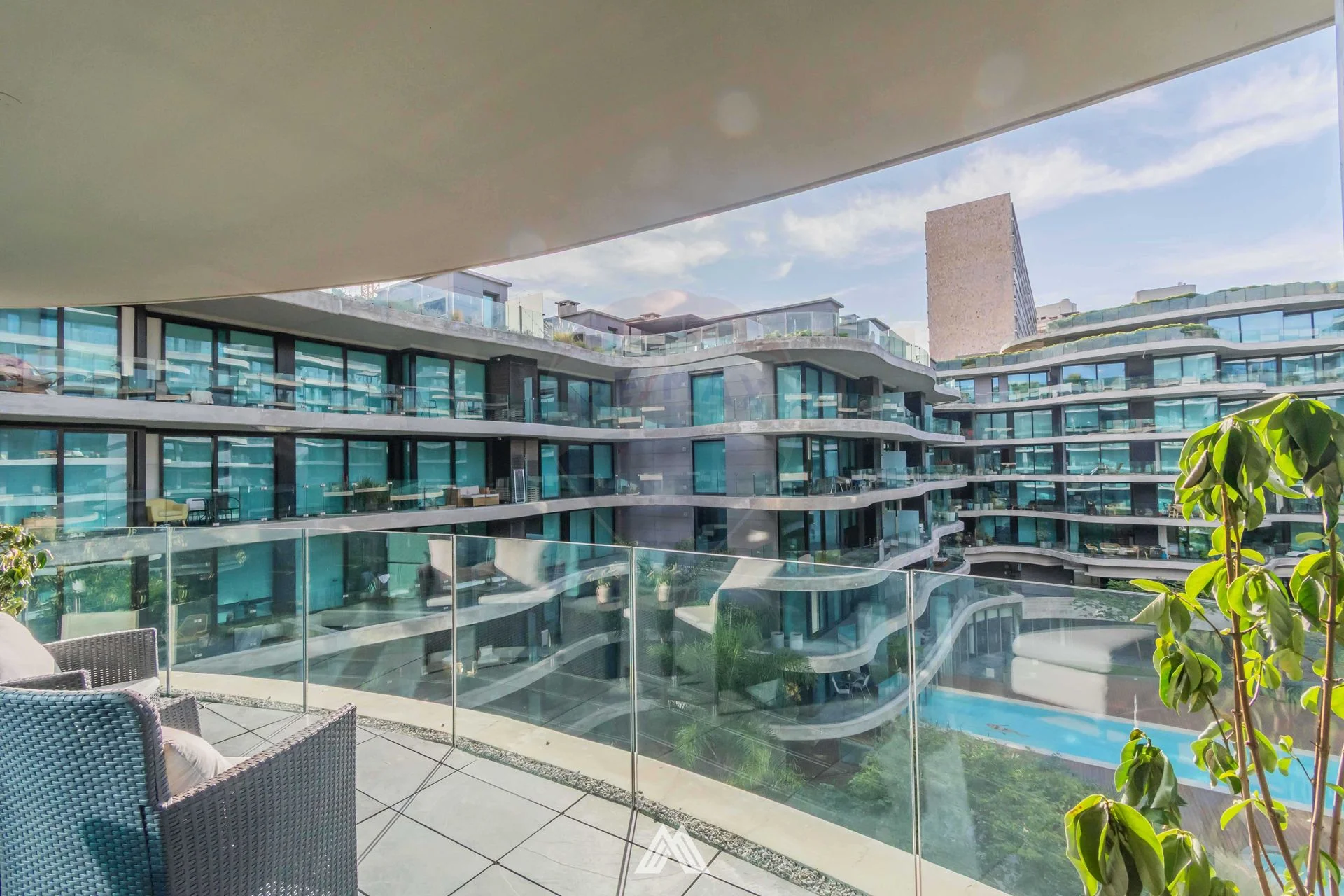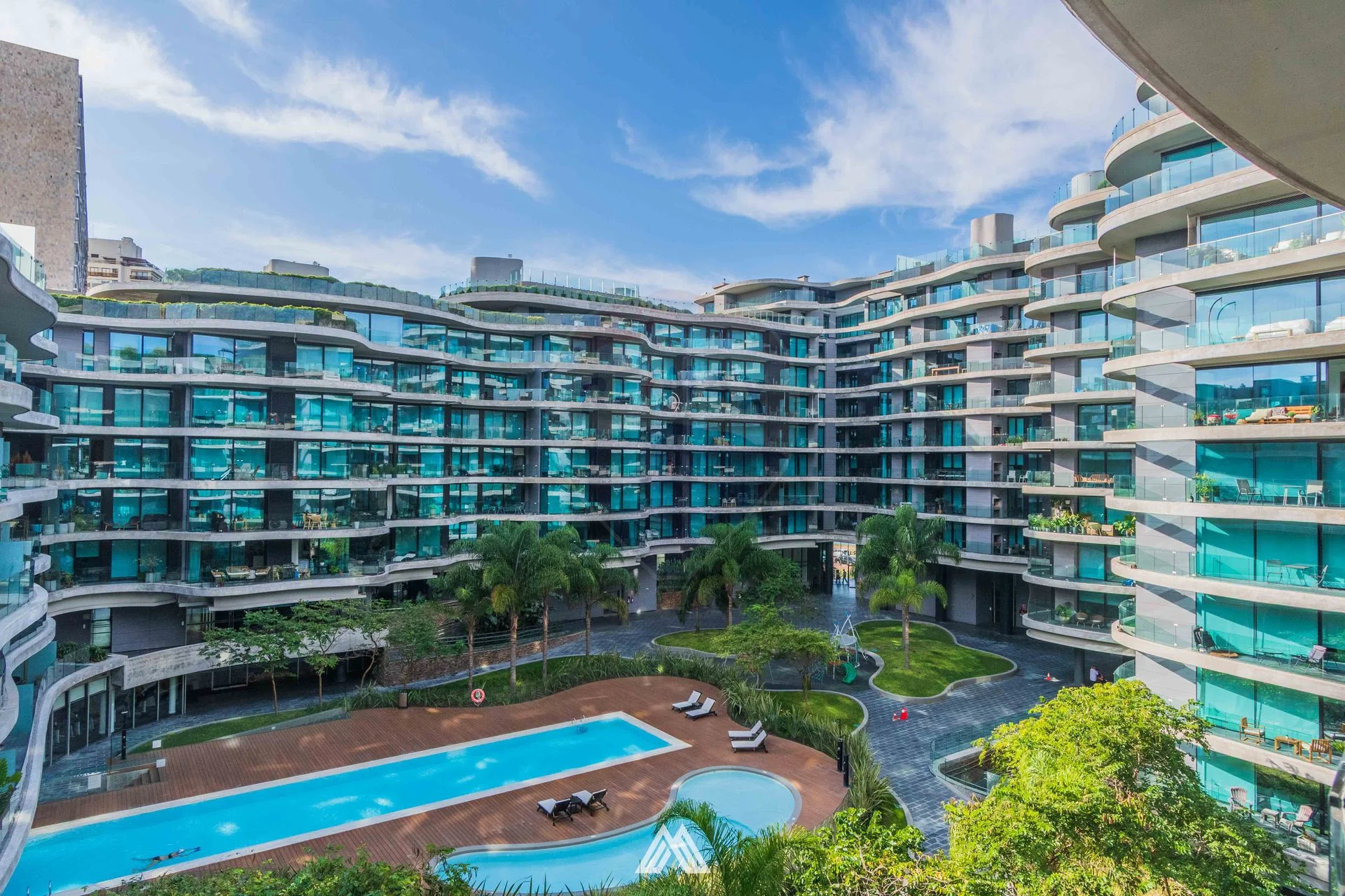 La unidad amoblada se encuentra en un 4to piso, orientación Norte con vista a las piscinas y gran espacio verde.