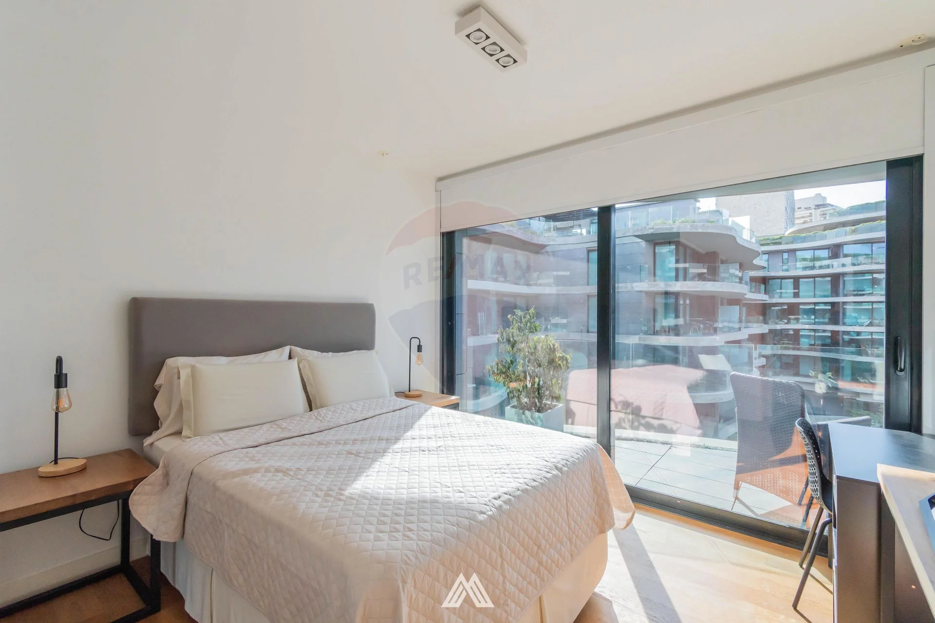 El dormitorio posee walk-in closet y acceso a terraza, cortinas eléctricas black out y un baño moderno de cómodas dimensiones.