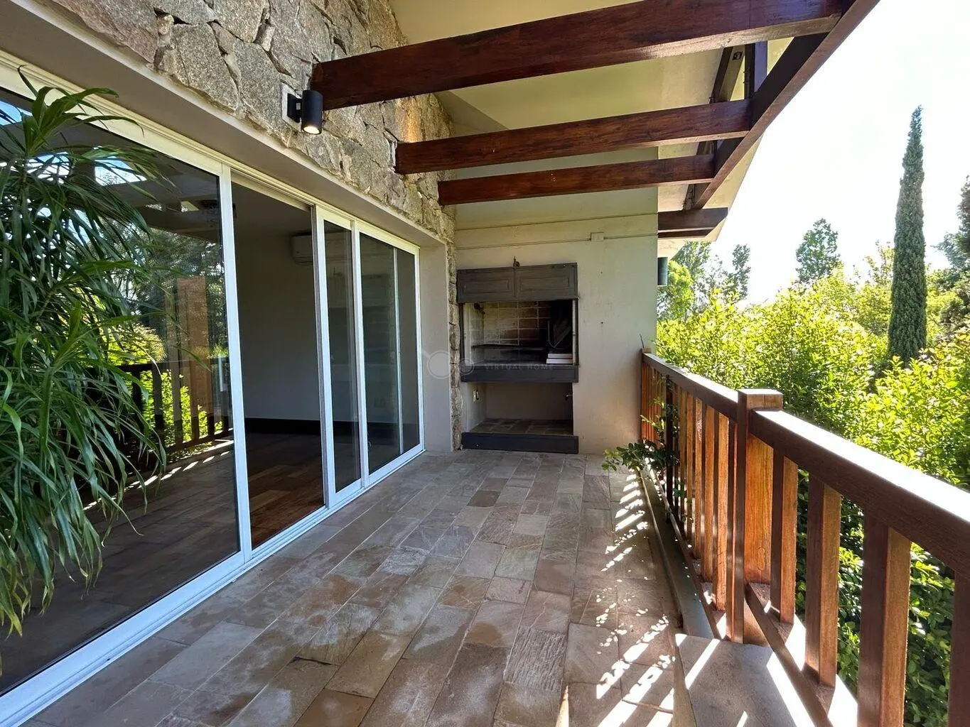- Balcón con parrillero propio y vista al jardín.