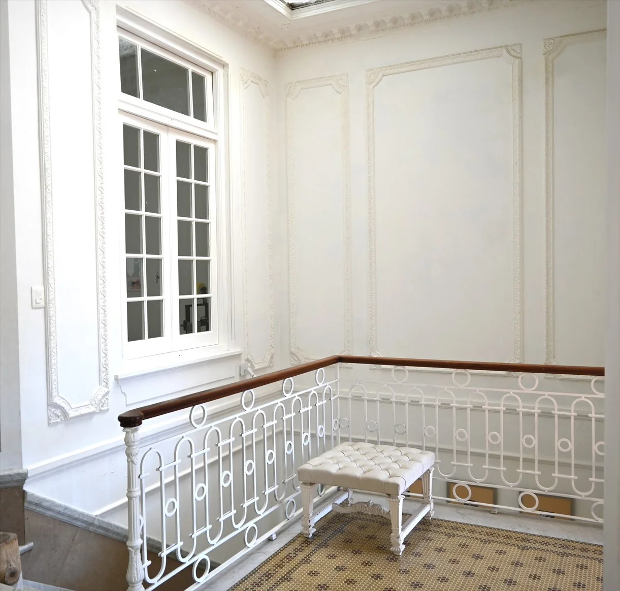 A través de una importante escalera de mármol, bajo la claraboya, se accede a la planta alta, donde las carpinterías, las molduras y los ambientes de gran altura cobran protagonismo.