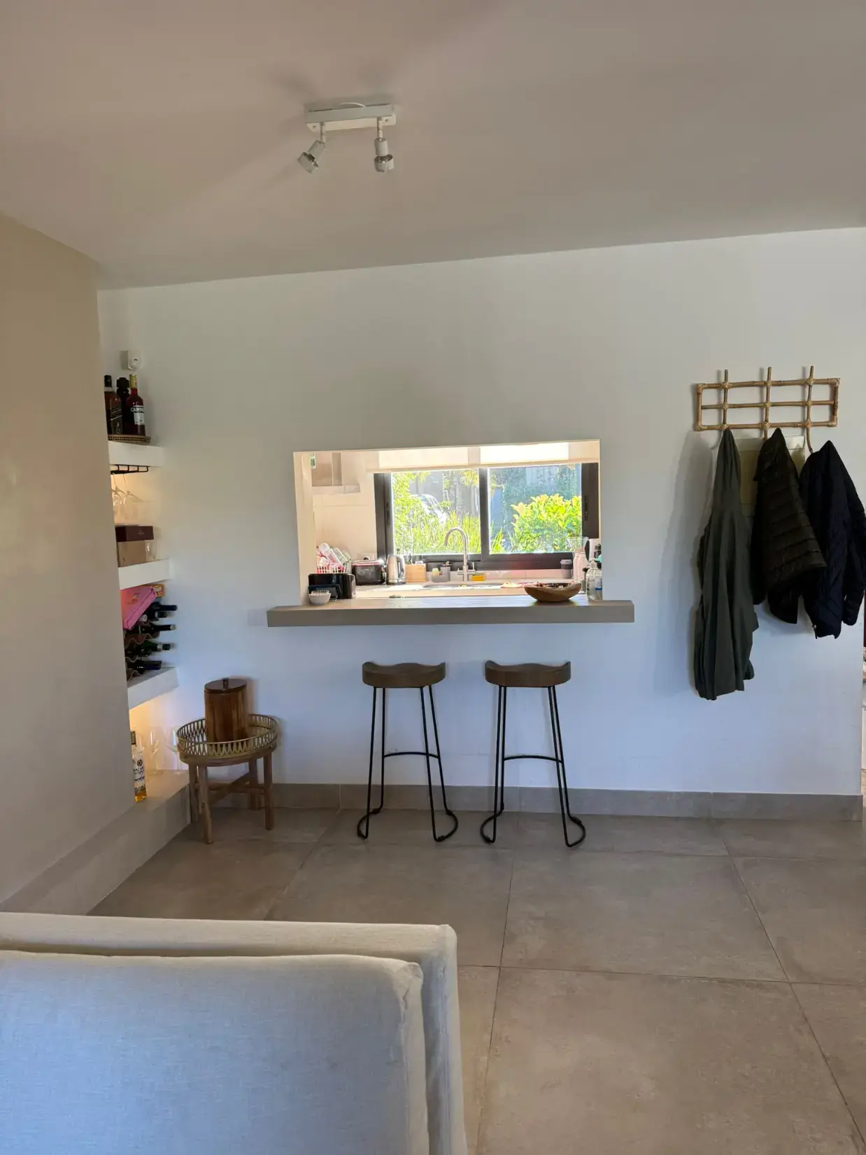 Toilette y gran estar con cocina semi integrada.