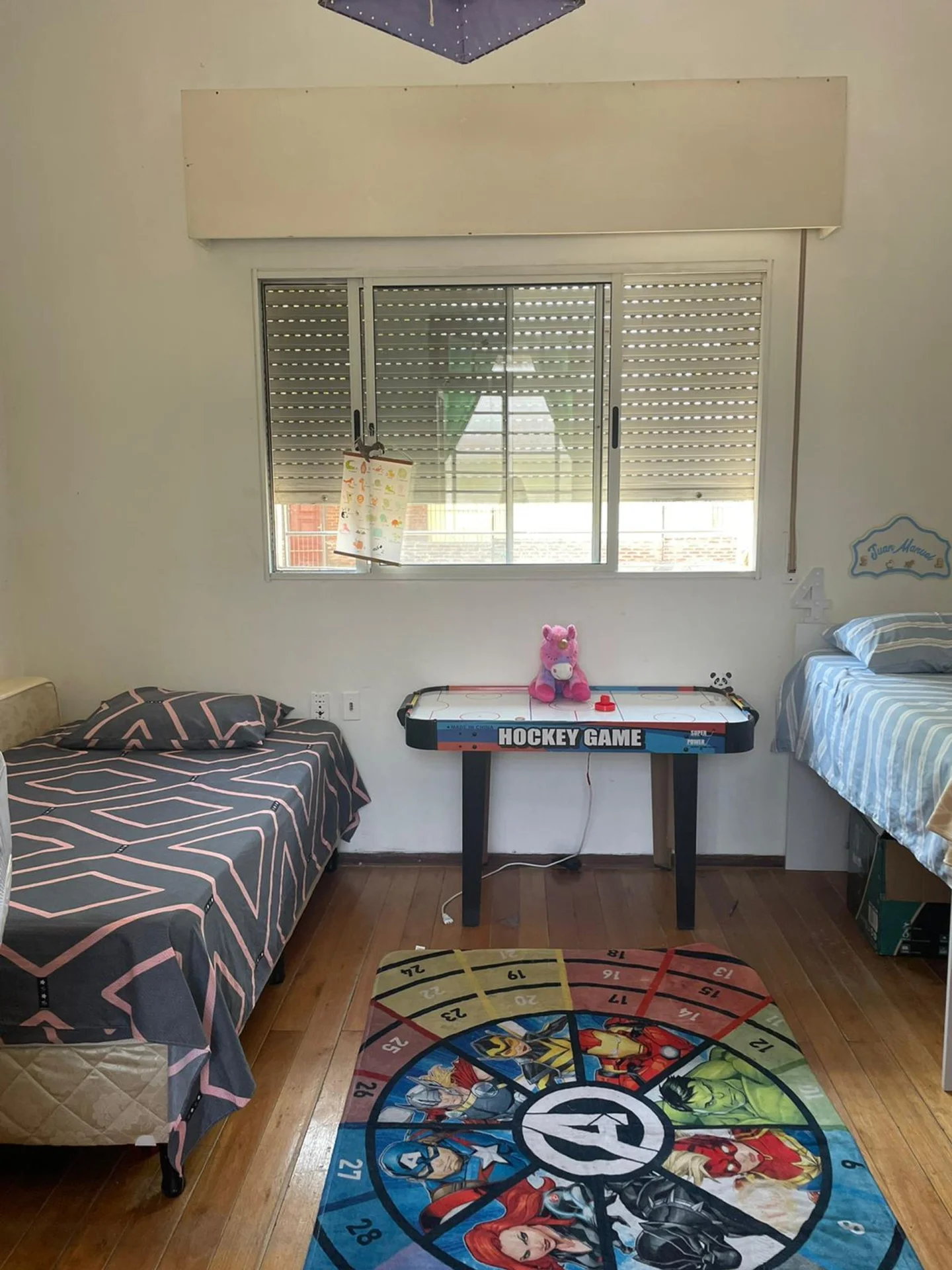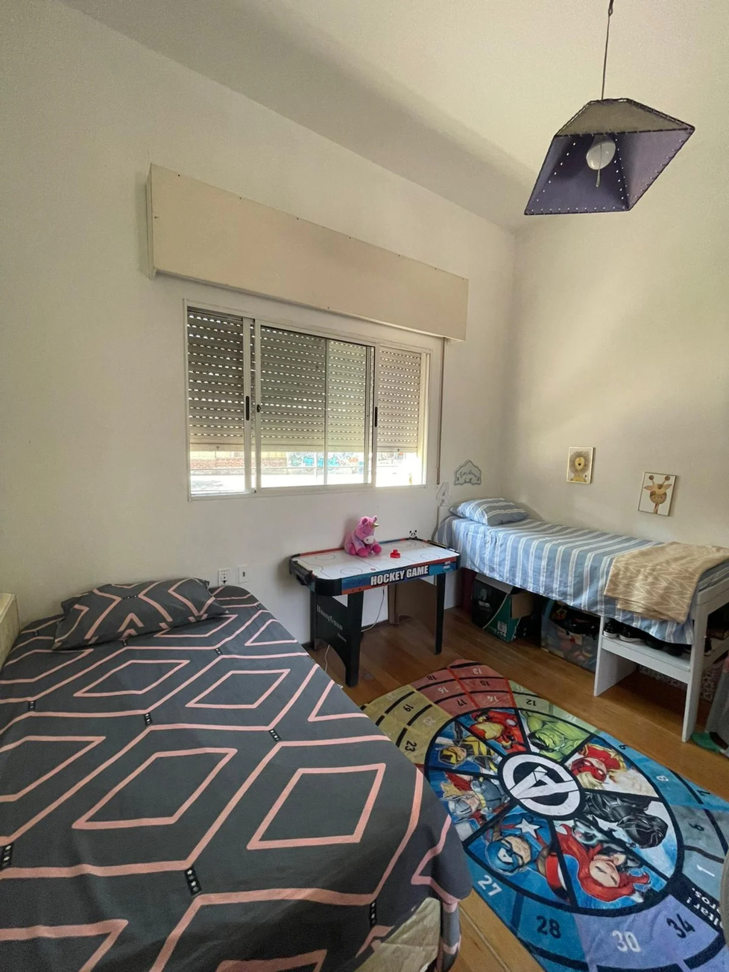 Se desarrollan, en 103 m2 construidos, 3 dormitorios muy amplios y luminosos, con ventanales de aluminio, con cortinas de enrollar, rejas y pisos originales de madera.