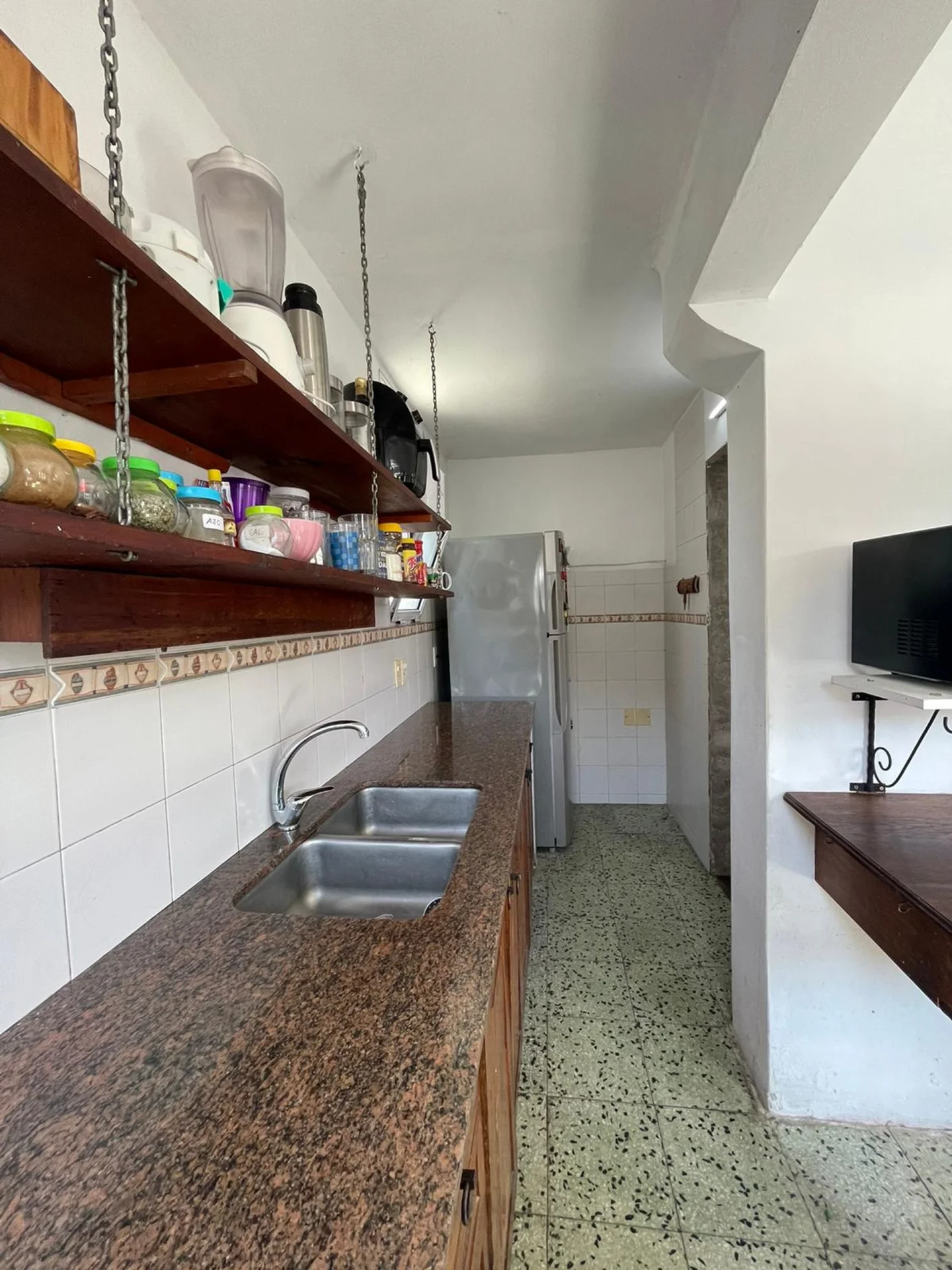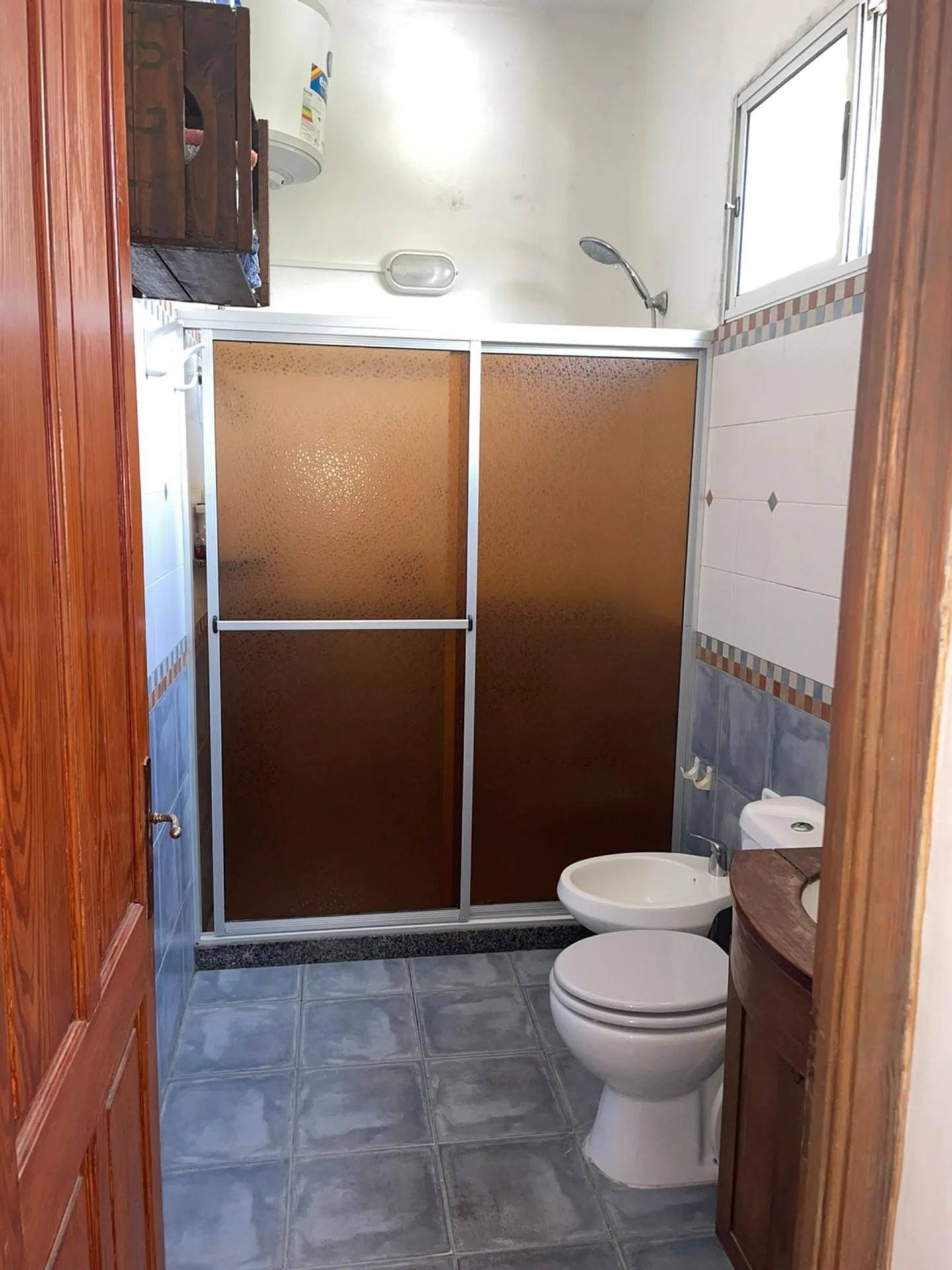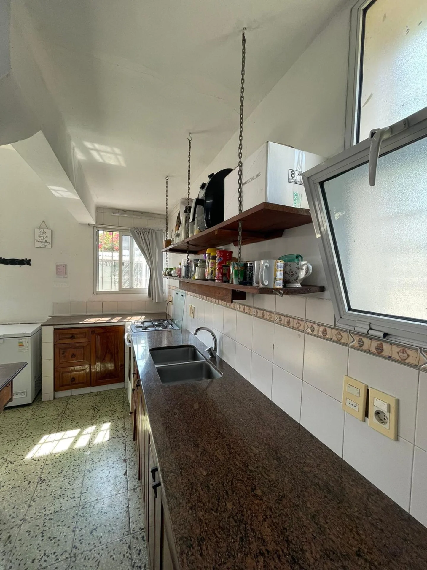 A través de un amplio pasillo de distribución, cercano al área de dormitorios, encontramos un baño completo; atravesamos el pasillo, luminoso, con grandes ventanales hacia el patio lateral, y llegamos al living, donde ubicamos un segundo baño completo. Desde el living accedemos a la cocina integrada con el comedor, y desde allí la salida hacia el patio, a través de amplios ventanales con rejas.