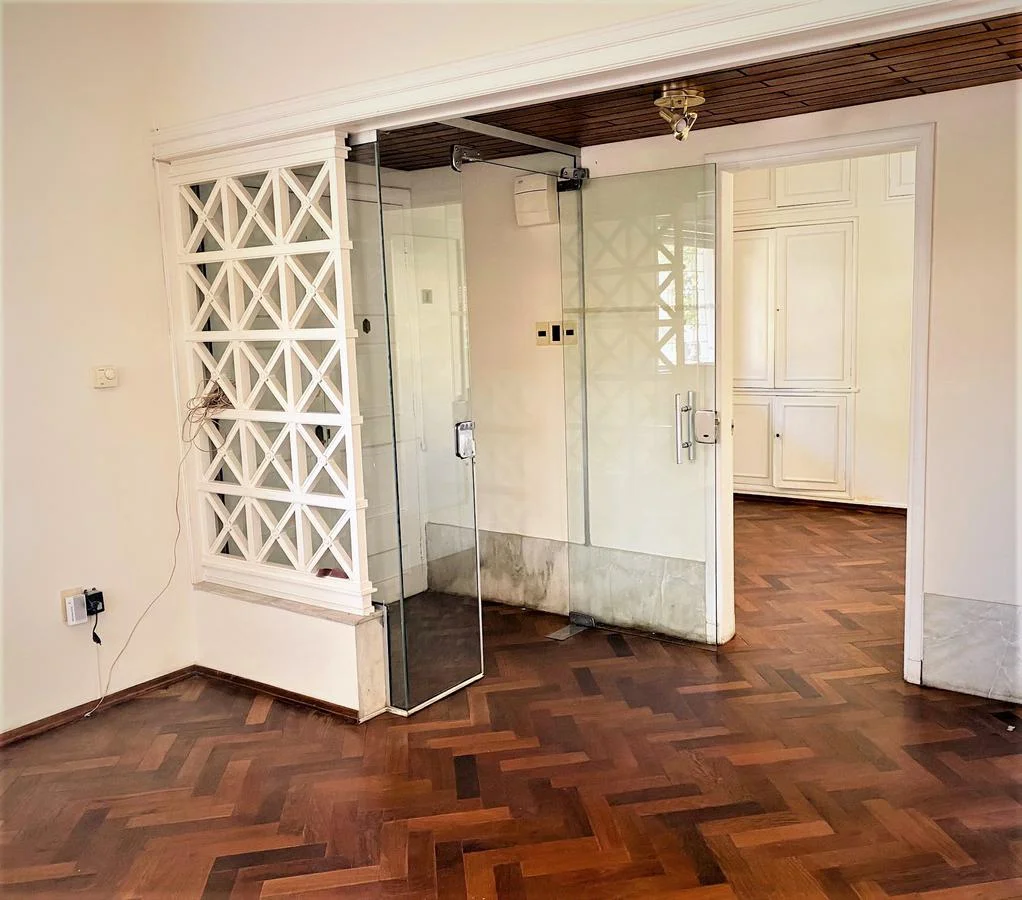 Hacia la derecha, gran living comedor con puerta corrediza que divide en dos ambientes.
