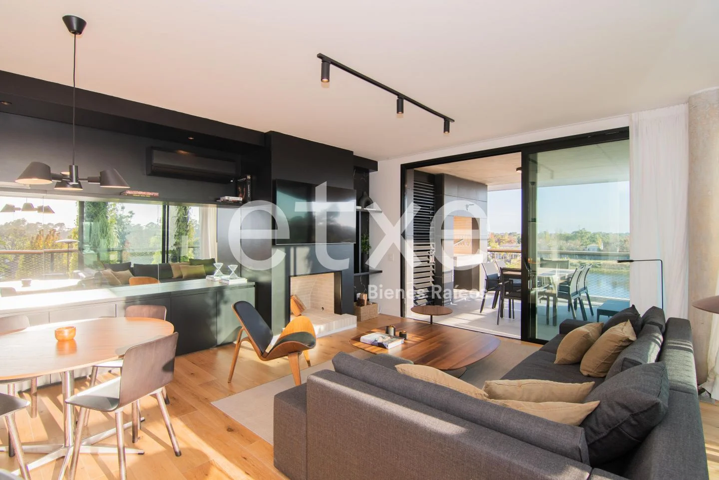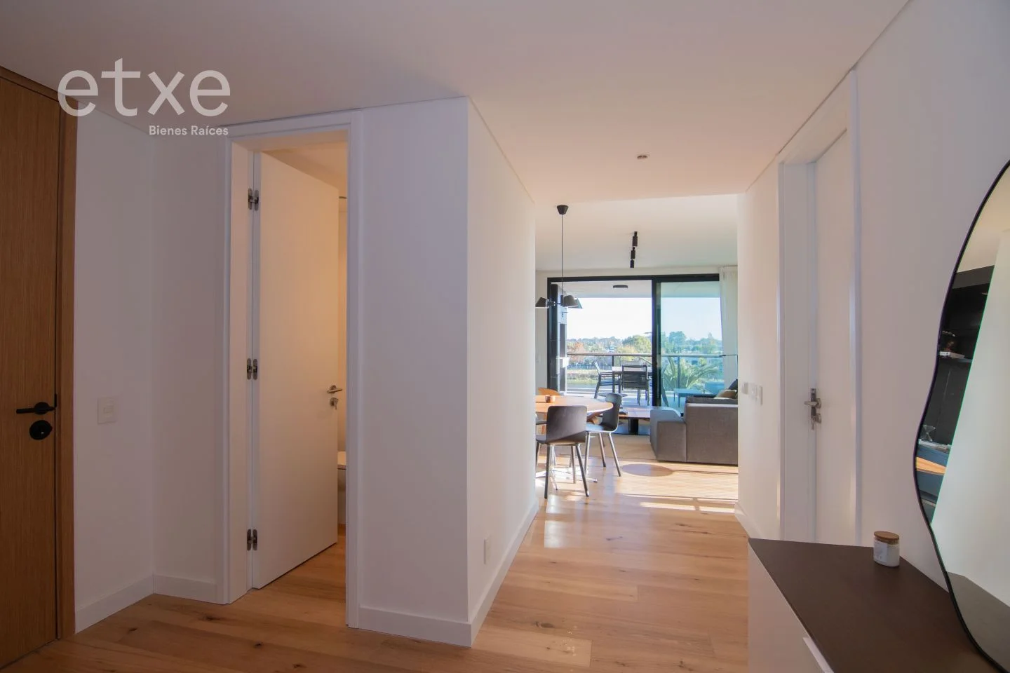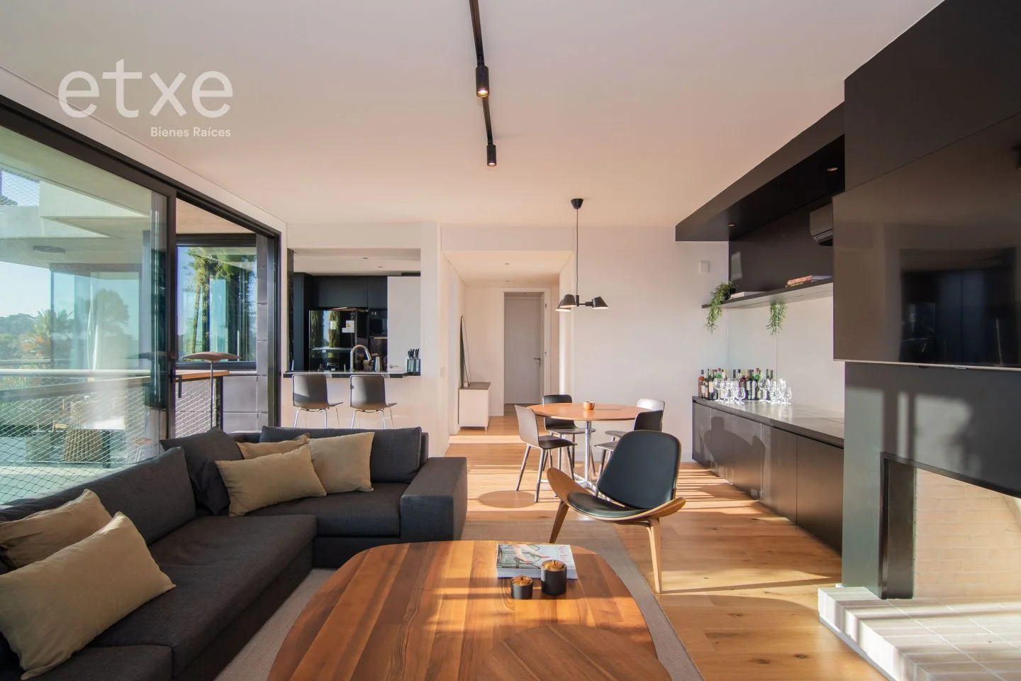 Orientación Este-Norte y Oeste, Los mejores atardeceres. Apartamento con muebles tope de gama. Se ingresa a pasillo con toilette. Living comedor con terraza amplia, cuenta con parrillero y vista al lago. El living cuenta con estufa a leña. Cocina semi-integrada con terraza. Dormitorio principal en suite, vestidor y salida a terrazas a cada lado. Dos dormitorios secundarios con vista al parque. Baño completo.