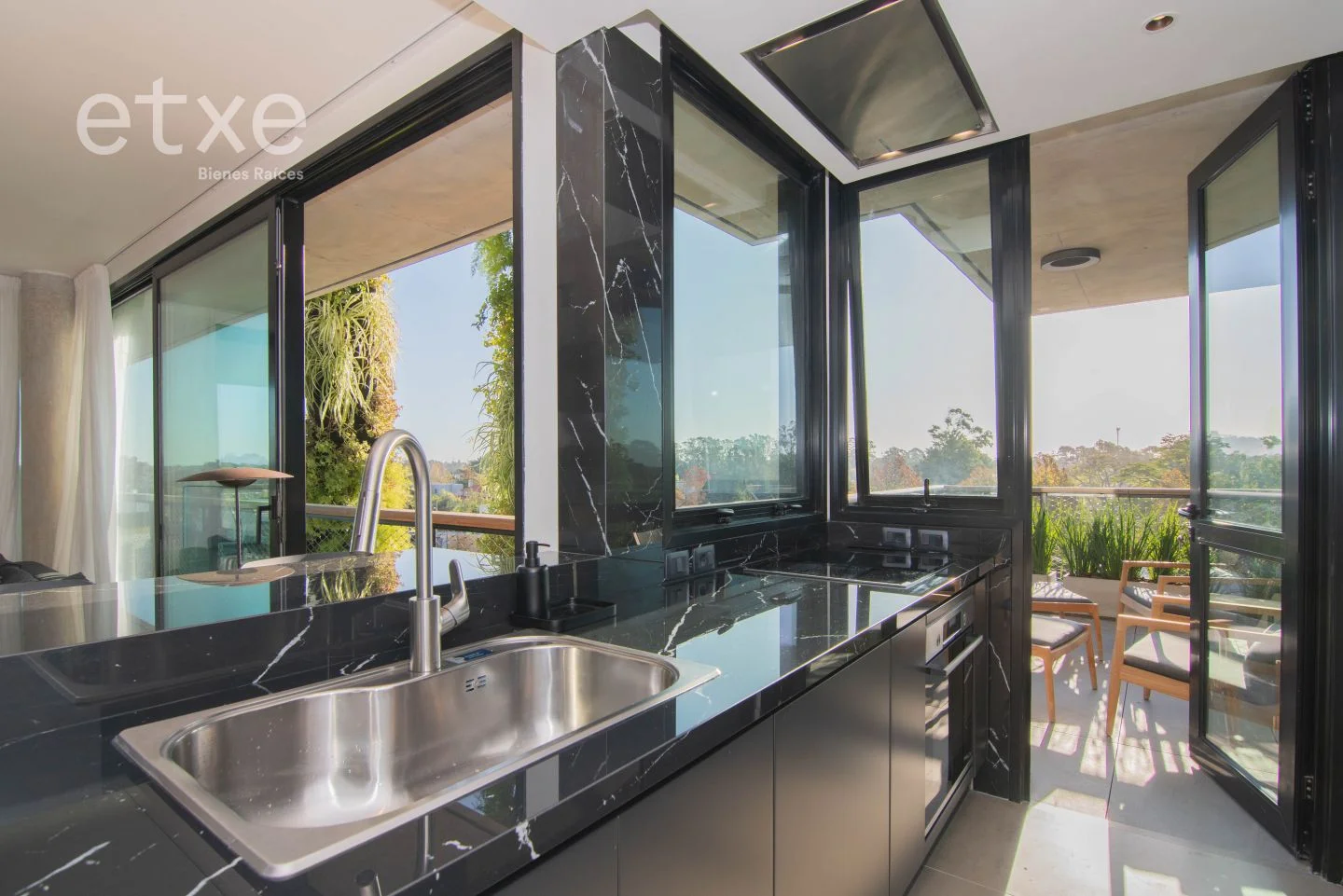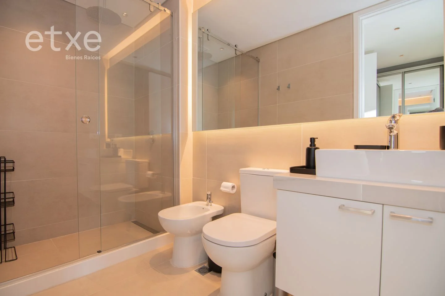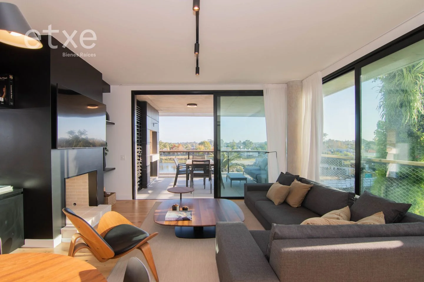 Orientación Este-Norte y Oeste, Los mejores atardeceres. Apartamento con muebles tope de gama. Se ingresa a pasillo con toilette. Living comedor con terraza amplia, cuenta con parrillero y vista al lago. El living cuenta con estufa a leña. Cocina semi-integrada con terraza. Dormitorio principal en suite, vestidor y salida a terrazas a cada lado. Dos dormitorios secundarios con vista al parque. Baño completo.