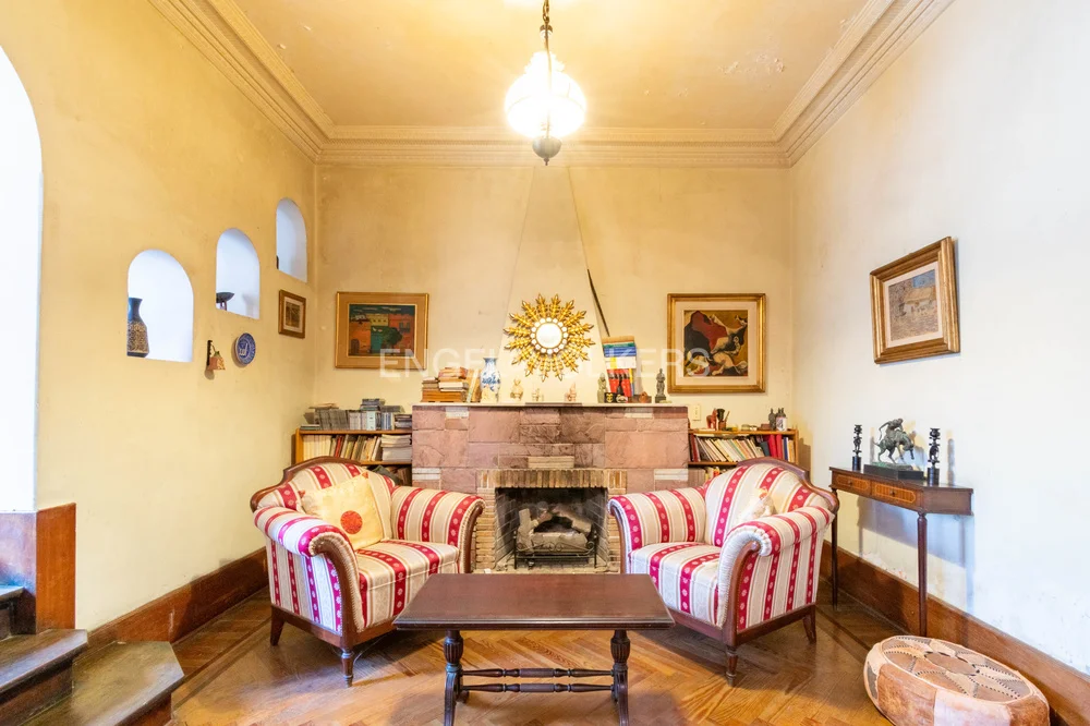 En planta baja encontramos, amplio living-comedor, estar diario con estufa a leña, cocina definida, con antesala, en estado original (necesidad de reciclaje), toilette, confortable patio trasero de unos 35m², y garaje cerrado para 1 auto.