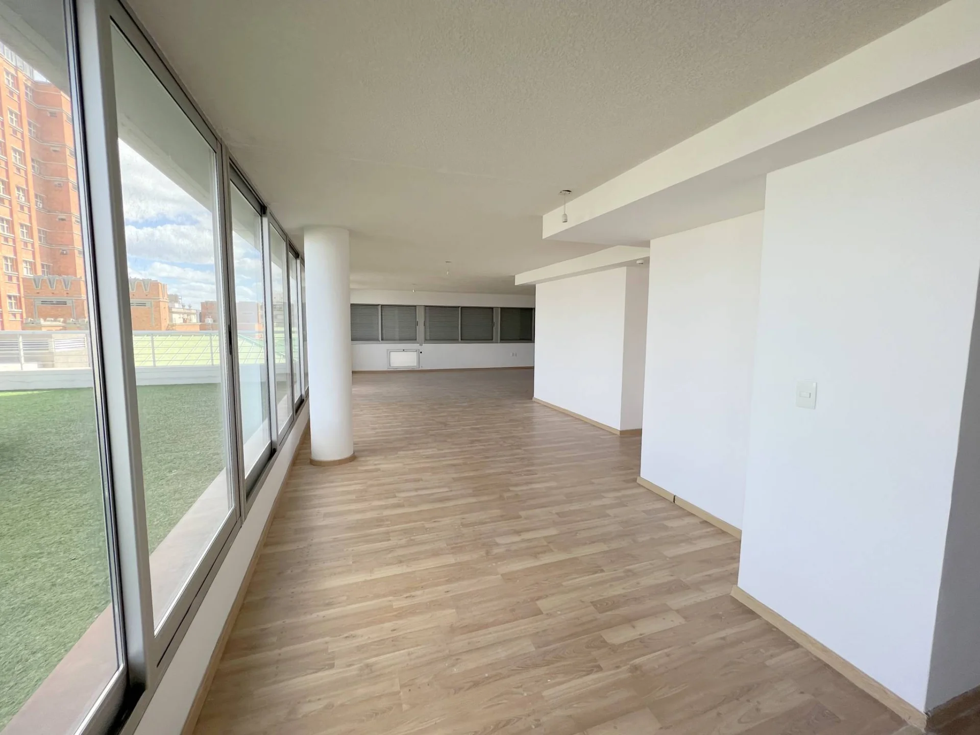 Amplia y luminosa con excelente vistas Planta de 186m2 con terraza de uso exclusivo de 34m2 con 1 baño y cocina semi - integrada. Cuenta con previsiones para colocar aires acondicionados en todos los ambientes.