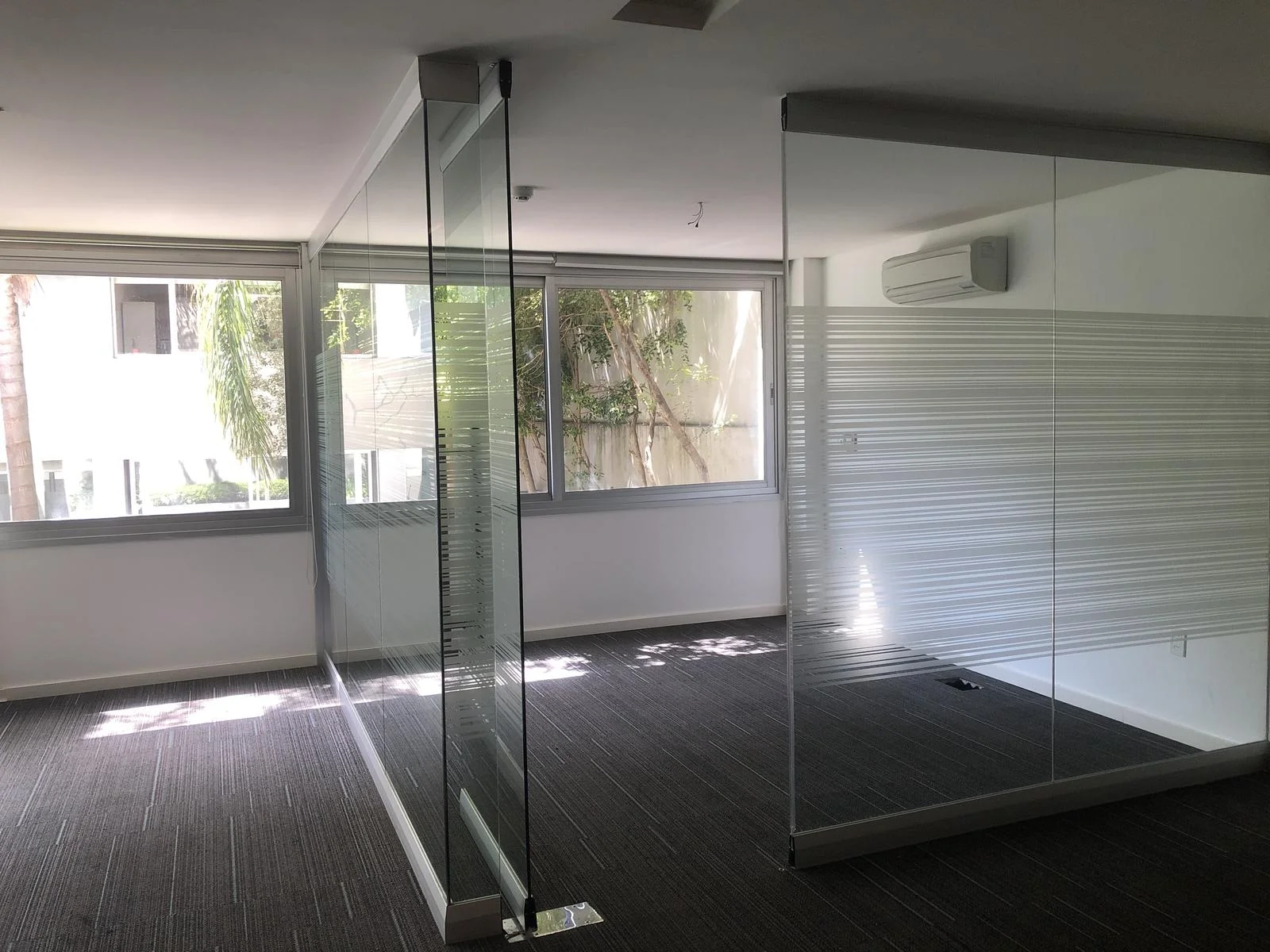 Al ingresar a la propiedad se encontrará con un pasillo y dos amplios espacios de oficinas individuales, al final del pasillo se encuentra el Ambiente principal de la Oficina, el cual es altamente iluminado por un gran ventanal, cuenta con una subdivisión de cristal que genera otro espacio de trabajo, Kitchenette y dos baños.