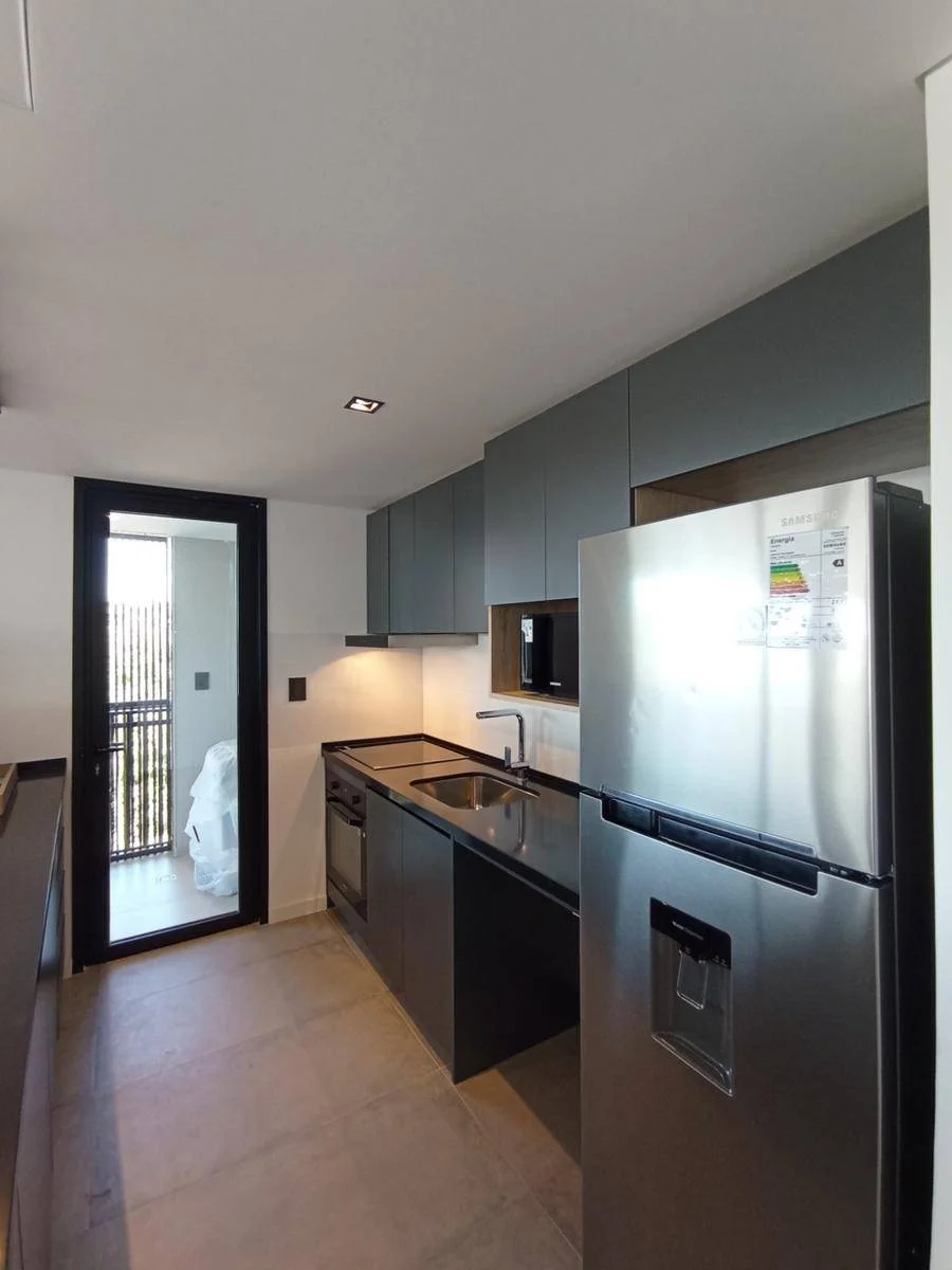 Cocina integrada con gran isla divisoria. Equipada con horno, anafe, campana y prevision para lavavajilla.