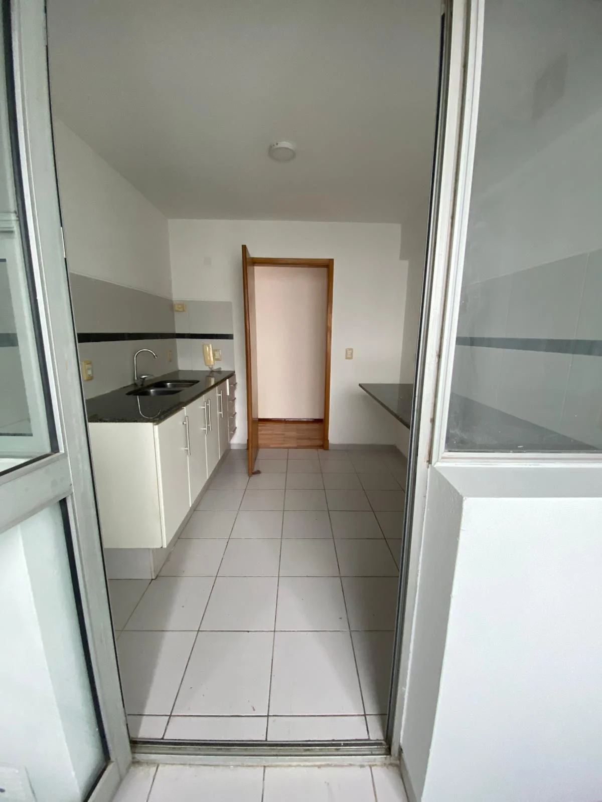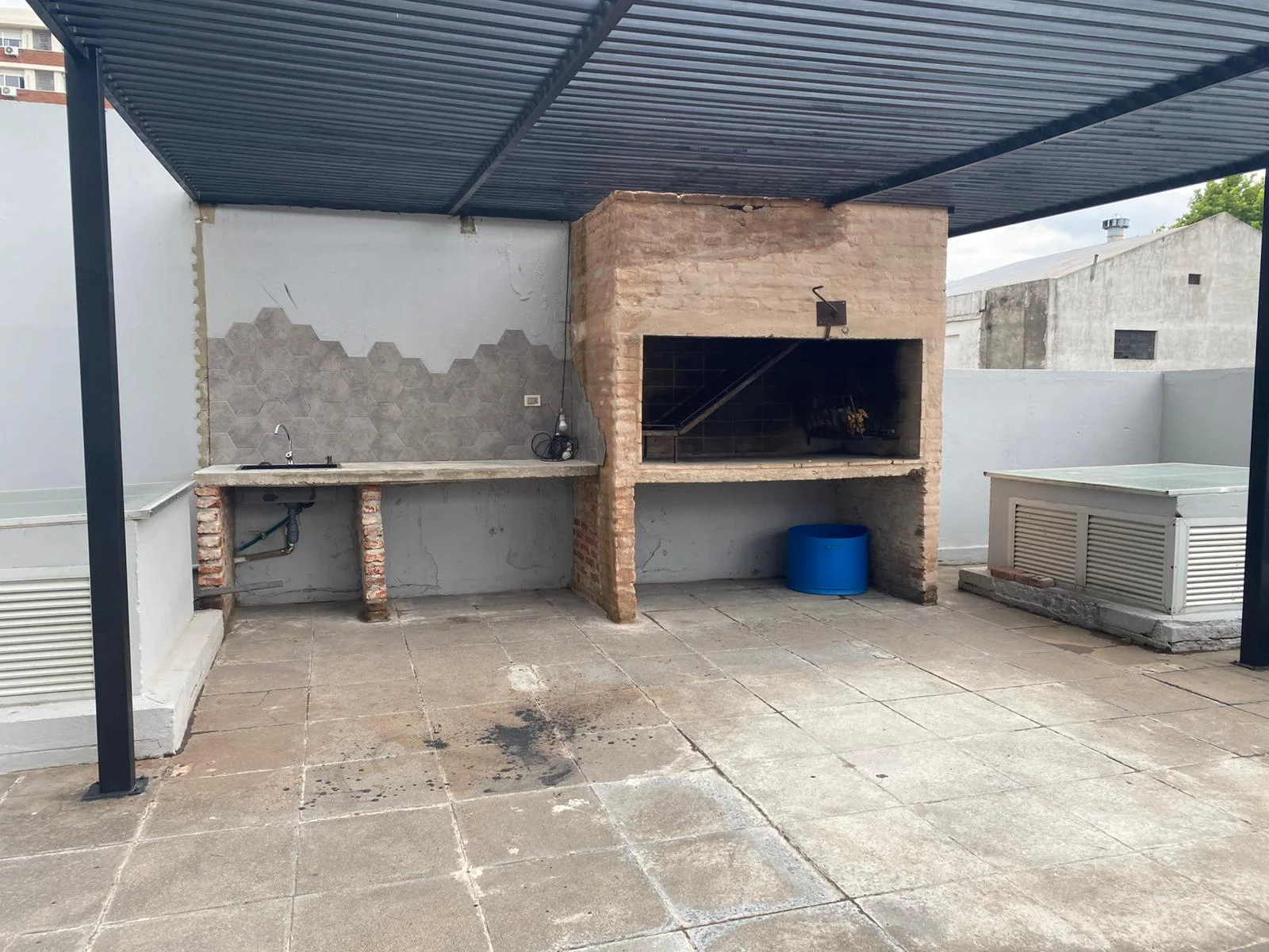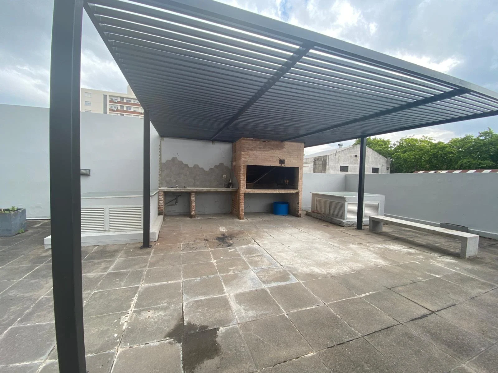 Cocina definida con muebles bajo mesada y barra, con salida a terraza lavadero.