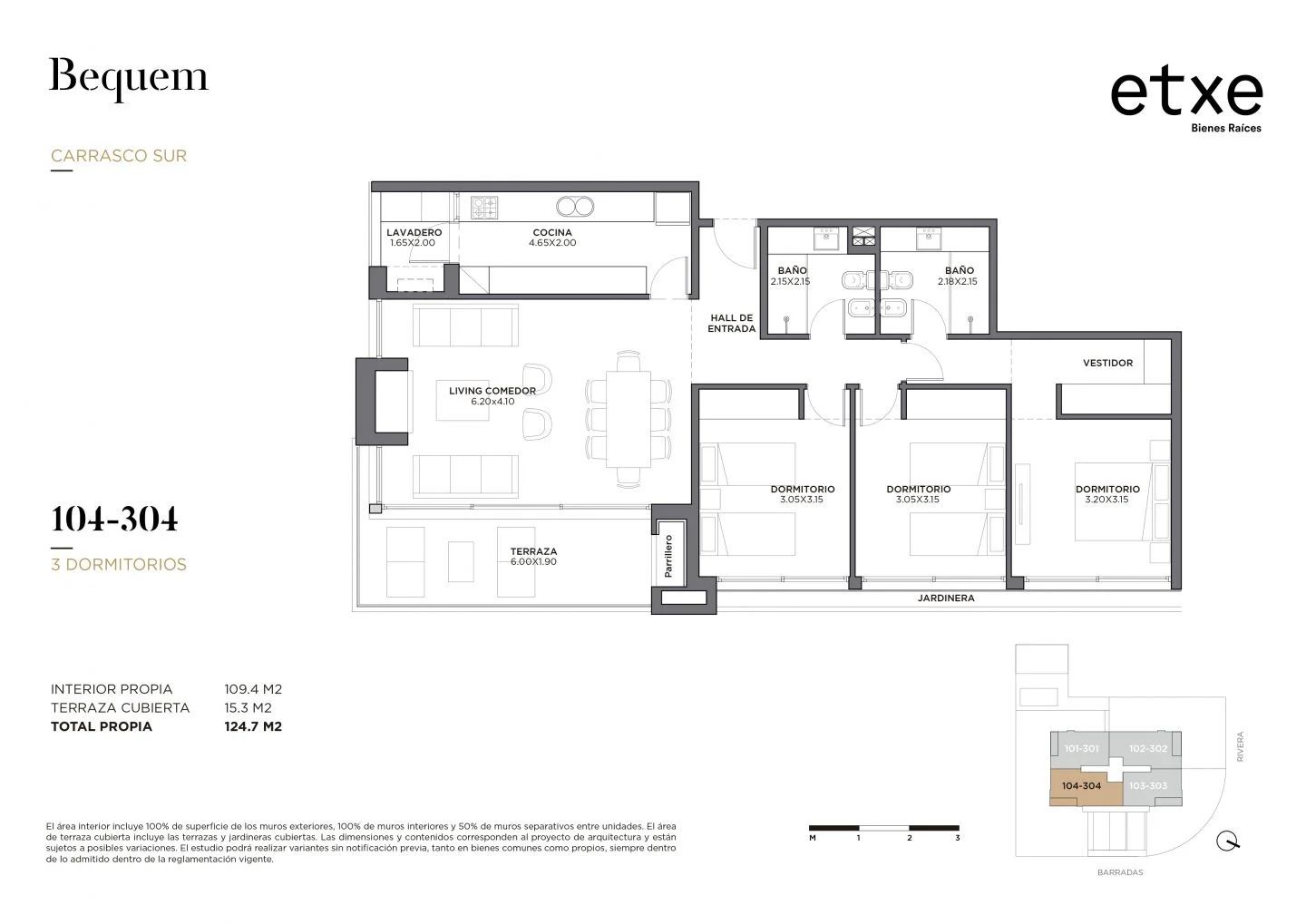 Alquiler de Apartamento 3 DORMITORIOS en Bequem, Carrasco, Montevideo.