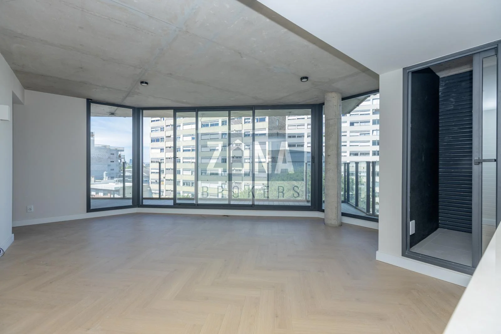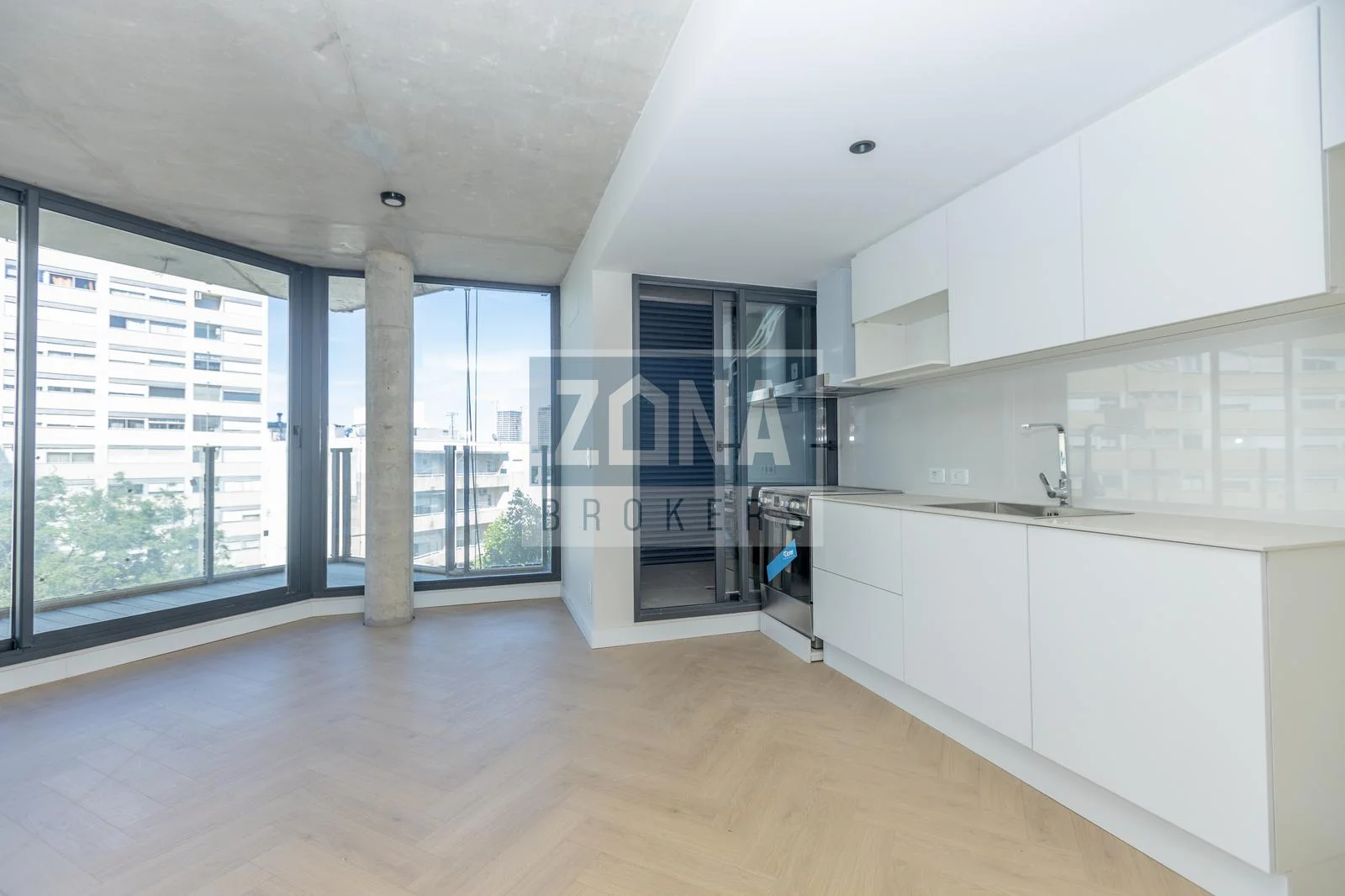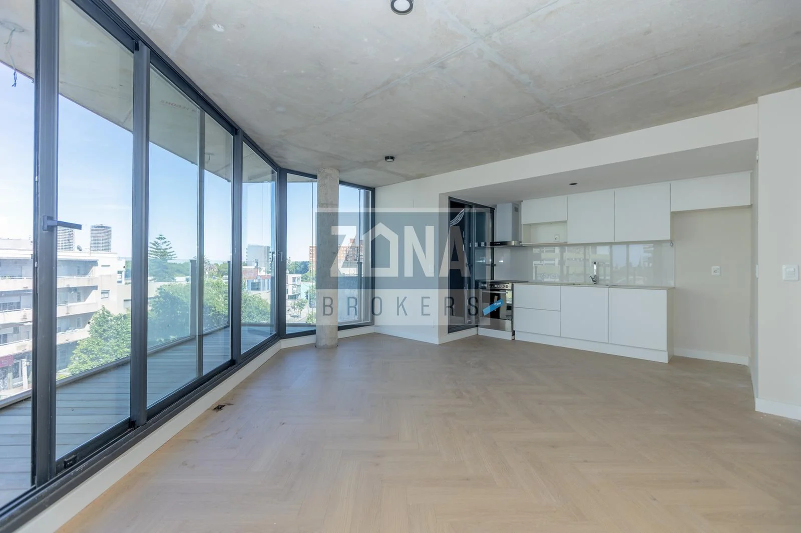 Se ingresa a esta amplia unidad, con living comedor que cuenta con ventanales con vidrios DVH de techo a piso brindando acceso a su balcón con parrillero de uso exclusivo de la unidad