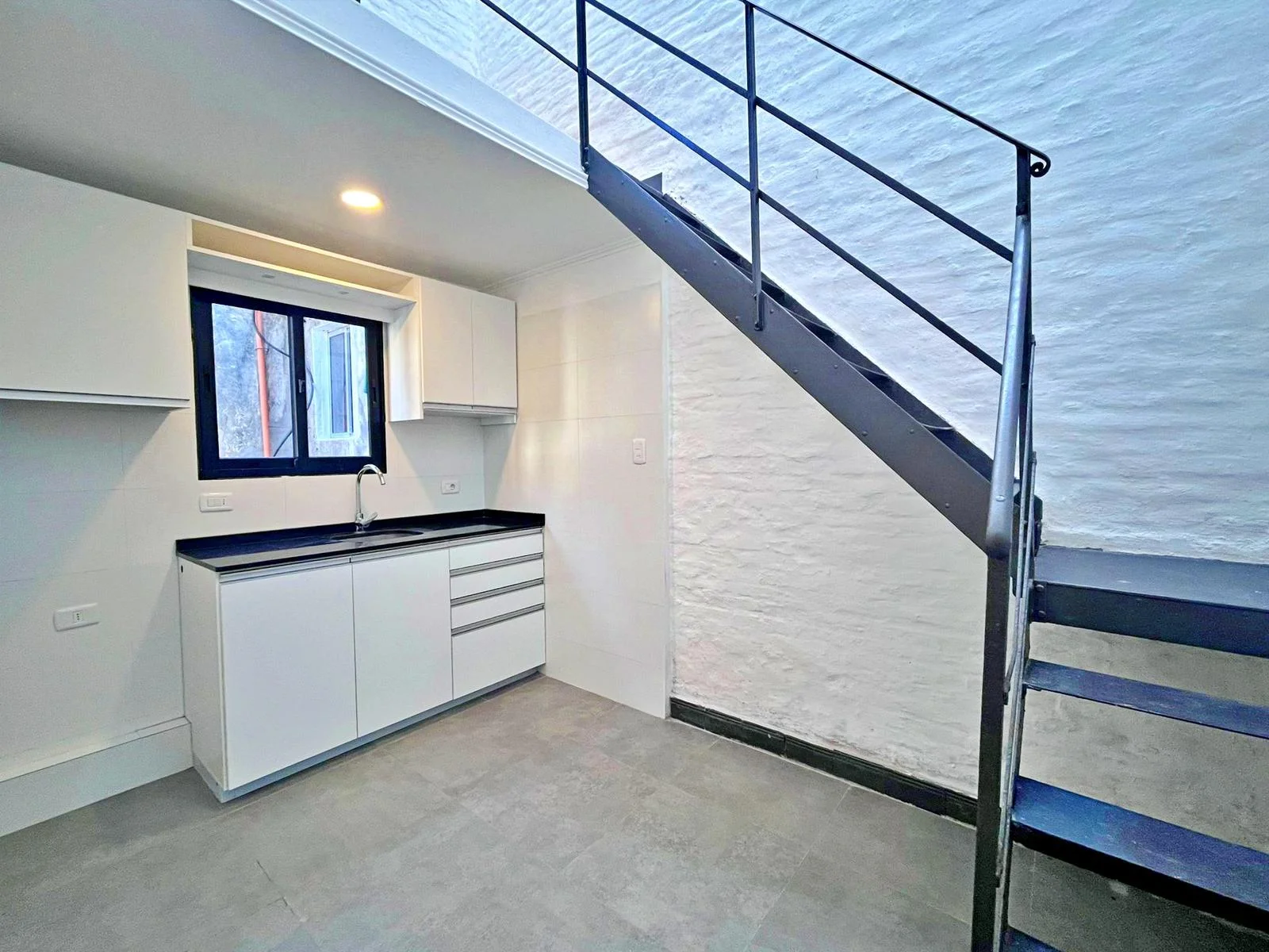 Cocina amplia con placares bajo y sobre mesada. A nuevo.