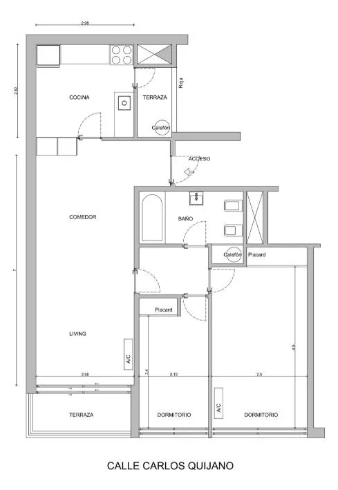 Excelente Apartamento Al frente.Ubicado en pleno corazón de la ciudad, a pasos de Av 18 De Julio con todos los servicios a su alcance. Dormitorios con placar empotrado, el principal con Aire Acondicionado.Living comedor con salida a terraza al frente y Aire Acondicionado. Ventanas dobles y cortinas de enrollar motorizadas que aseguran mayor aislamiento y comodidad.Baño con calienta toallas y calefón, bañera con mampara.Cocina definida equipada con calefón independiente, cocina con hornallas y horno eléctrico, extractor y heladera.Terraza lavadero con lavarropa de pared.Calefacción central por losa radiante incluida en los gastos comunes.Gastos comunes $7.000Garantía de ANDA.Contrato a 2 años.