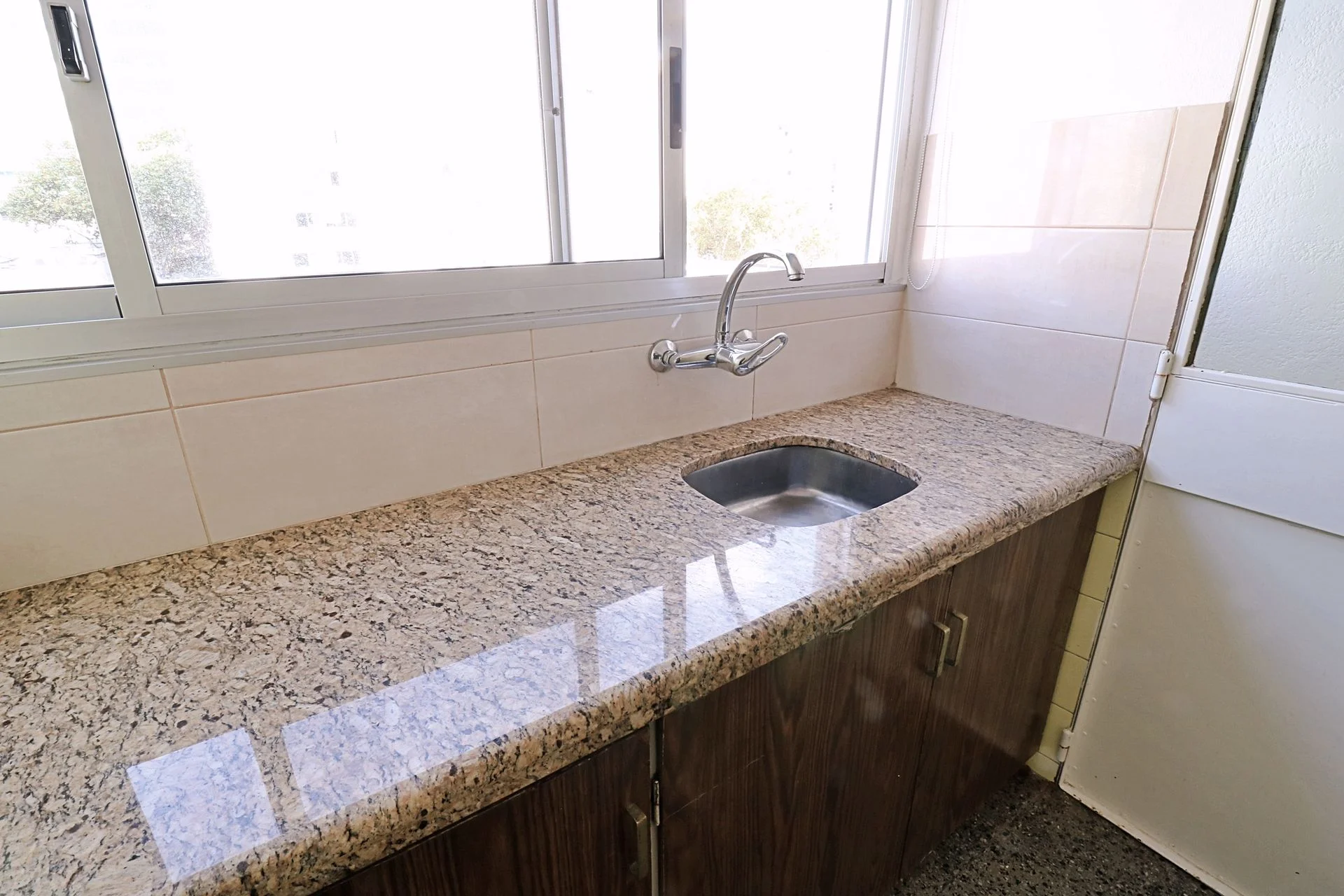 Terraza lavadero, con cerramiento e instalación para lavarropa.