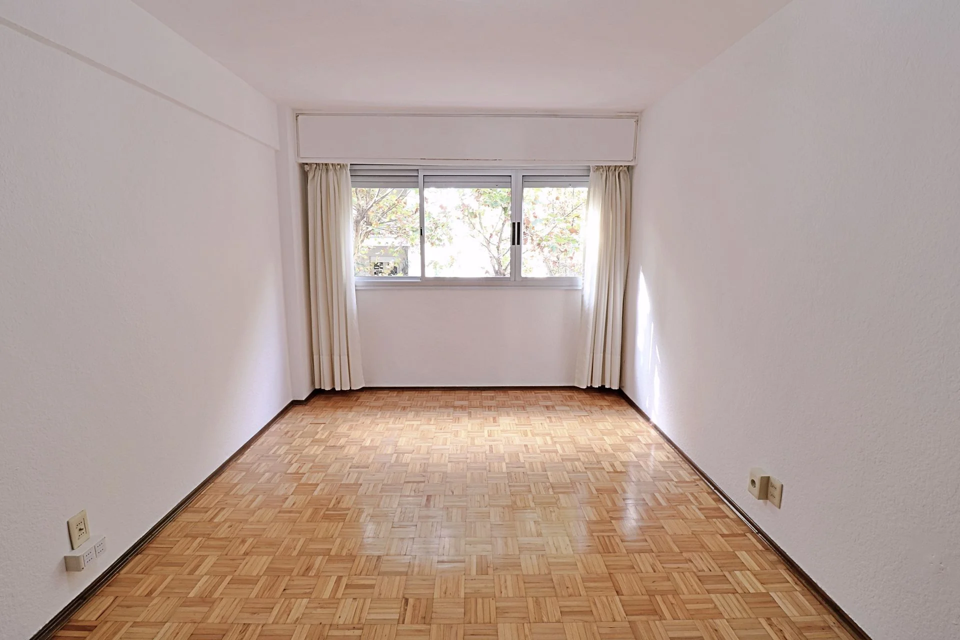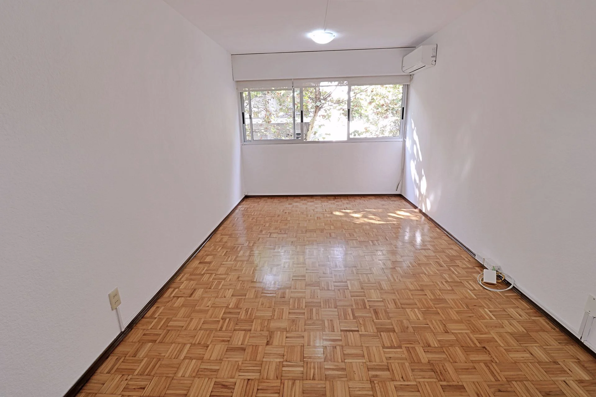 Living comedor al frente, con aire acondicionado, piso de parquet.