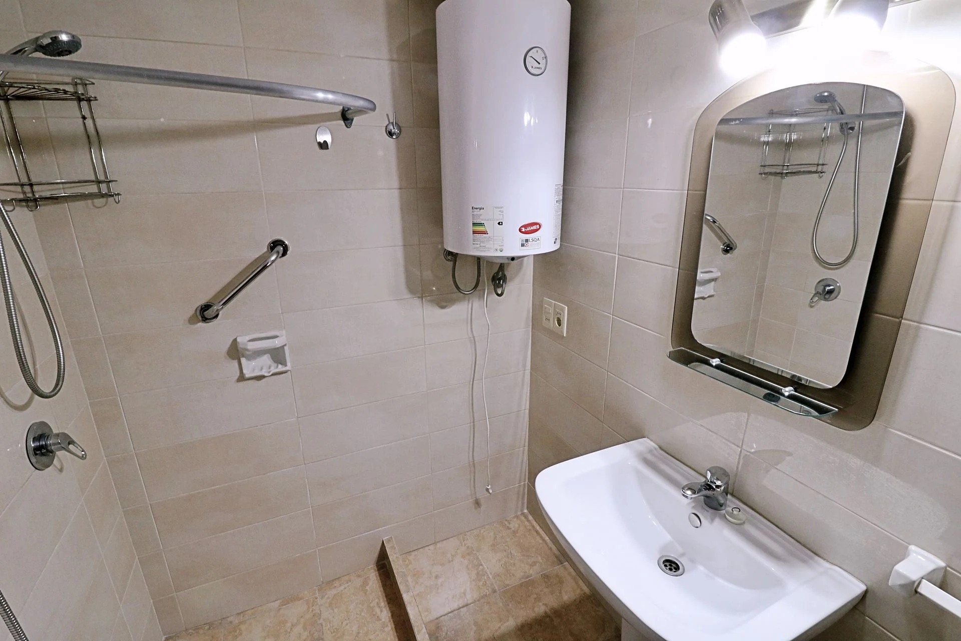 Baño completo con calefón de 60 litros.